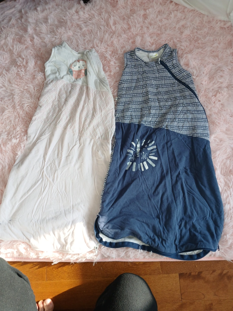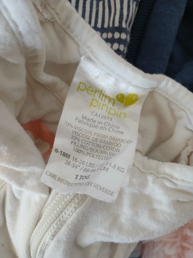 sleep sacs / wearable blankets Perlim pinpin brand - 2 (bamboo fabric) Halo brand (microfleece) all 1.0 tog rating for warmth $5 each