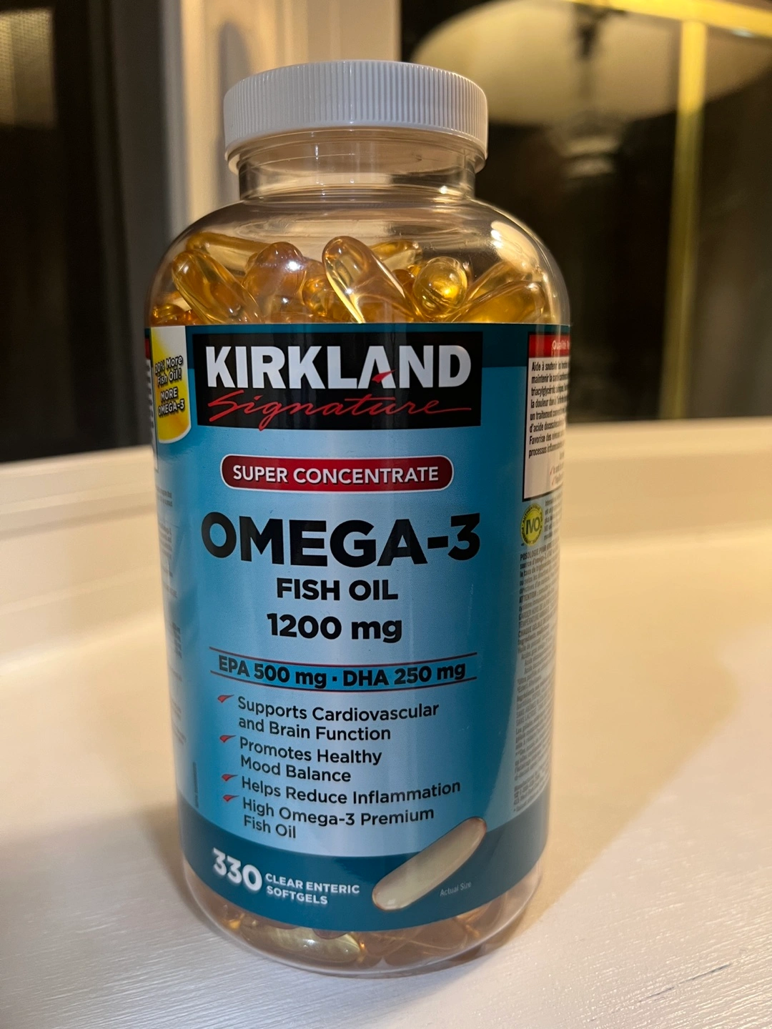 Kirkland Signature Super Concentrate Omega-3 Fish Oil. 1200 mg per serving. 330 softgels.