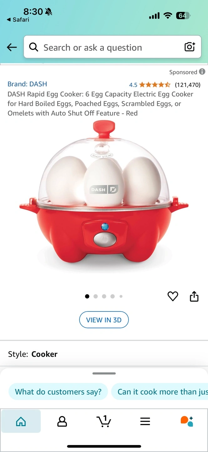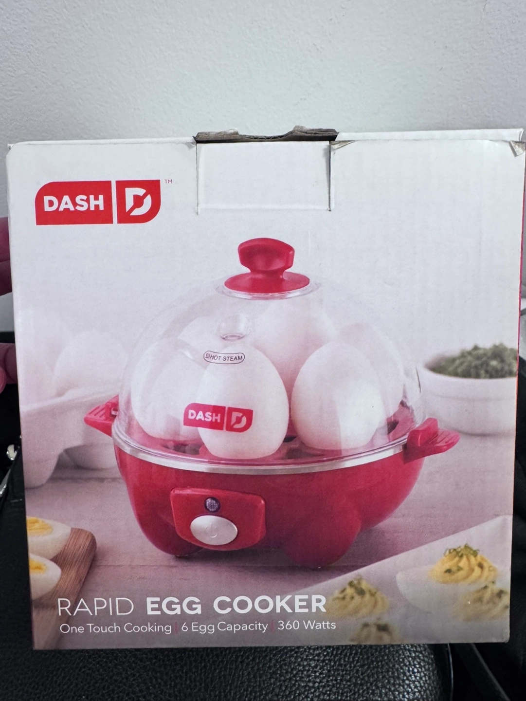 193Six egg capacity. One touch cooking. Makes hard boiled, poached, scrambled eggs, or omelets. Used once