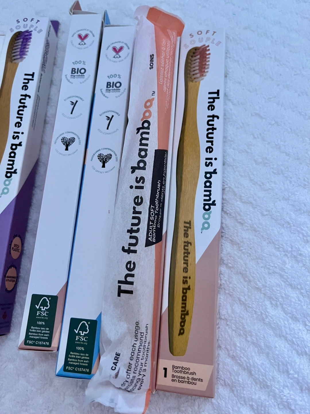 Brand new adult soft bamboo toothbrushes. Individually packaged. Sustainable and eco-friendly. Various colours.