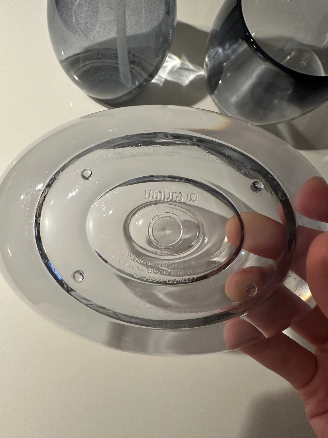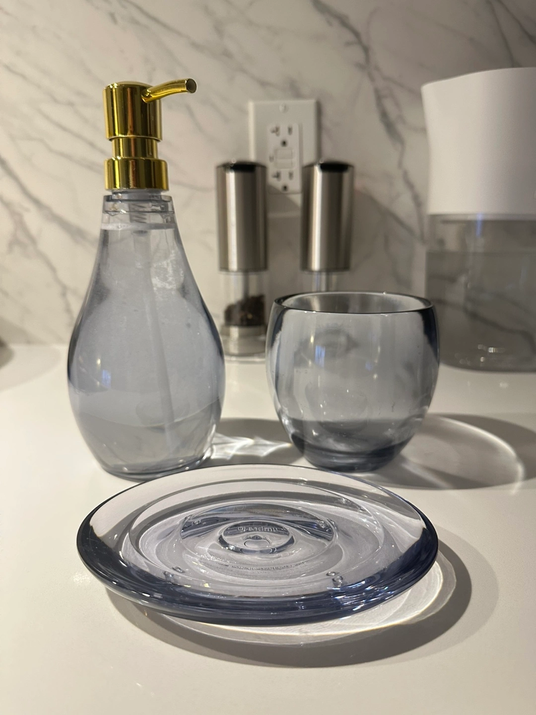 Umbra’s Droplet collection, a series of bathroom décor items made of durable, strong acrylic. All Denim color. $10 for 3 pieces. More details - • Droplet Soap Dispenser (Current Retail Price: $20) https://ca.umbra.com/products/droplet-soap-pump?variant=31747898212486 • Droplet Soap Dish (Current Retail Price: $11) https://ca.umbra.com/products/droplet-soap-dish?variant=31402342088838 • Droplet Tumbler (Current Retail Price: $11) https://ca.umbra.com/products/droplet-tumbler?variant=31747810427014 ! Pls note there’re water marks and these are used products, but in good conditions. Only available for pickup at Downtown Toronto (Harbourfront)