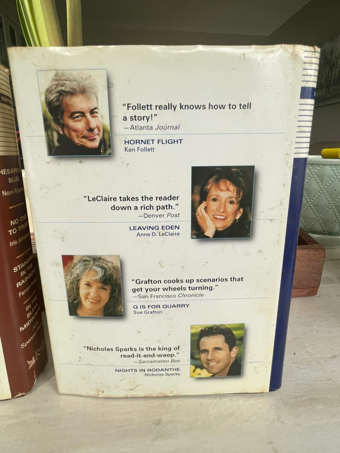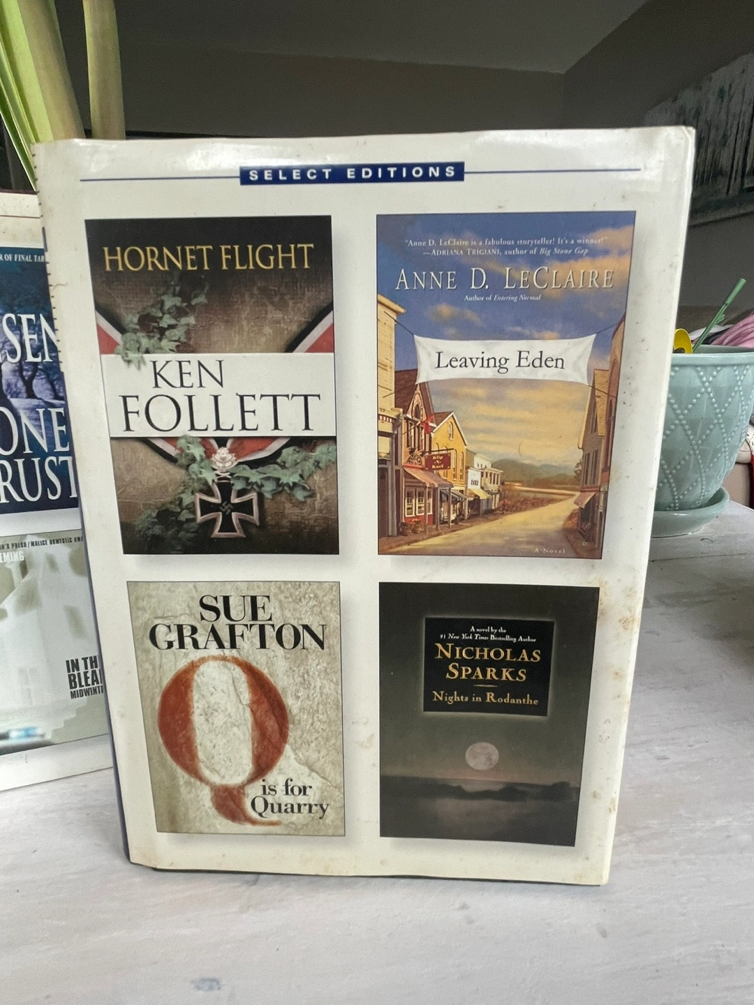 Collection of eight novels. Includes works by Nora Roberts, Iris Johansen, Fannie Flagg, Julia Spencer-Fleming, Ken Follett, Anne D. Leclaire, Sue Grafton, and Nicholas Sparks. Select Editions imprint.
