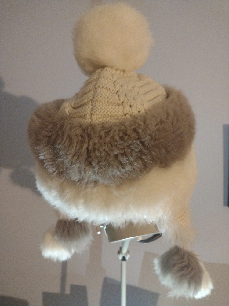 Warm and cozy winter toque. Features a chunky knit crown and fluffy faux fur brim. Multiple pom-poms for extra flair. Perfect for chilly weather.