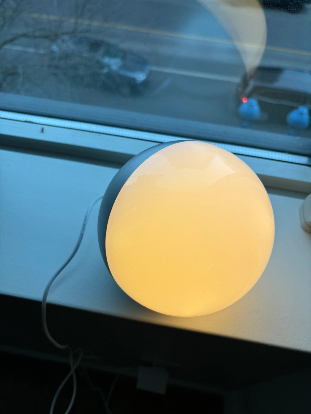 83Portable Touch sending smart lamp. Two-toned design. Emits warm light. Requires power cord. Meet at Richmond or Van ( Fraser & king Edward )