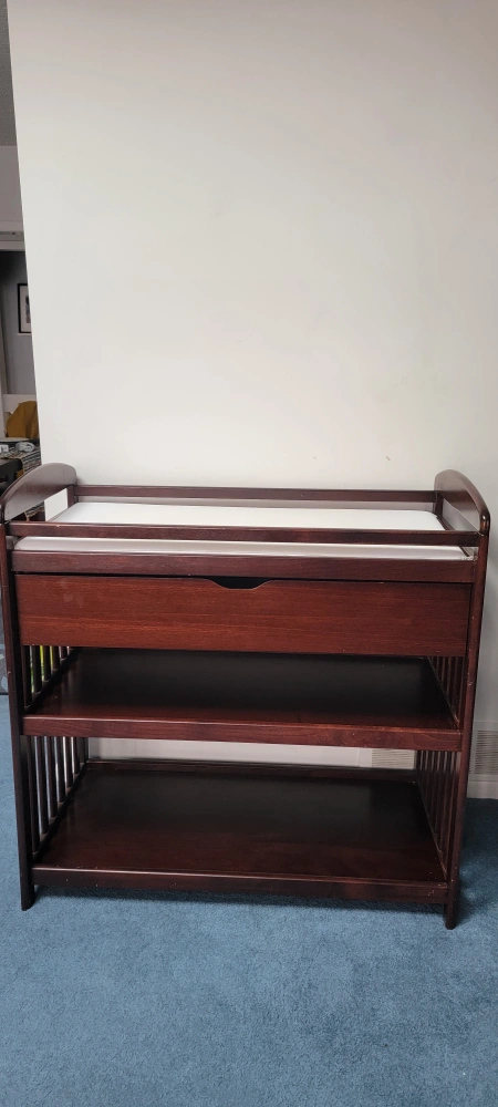 100Baby diaper change table with one drawer and shelves. Liner pad included. 40 or best offer. Drawer liner has slight wear & tear. Pickup near 401& Neilson Scarborough our little one.
