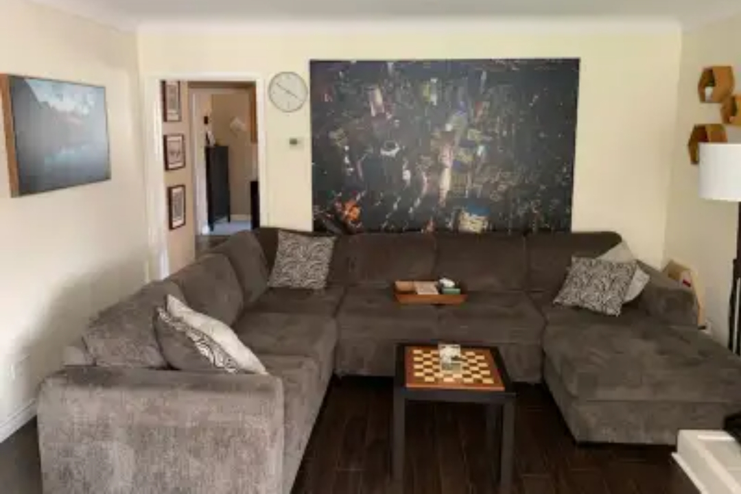 6-8 people can fit in this couch. bought 6 months ago for $2300. Selling for 950