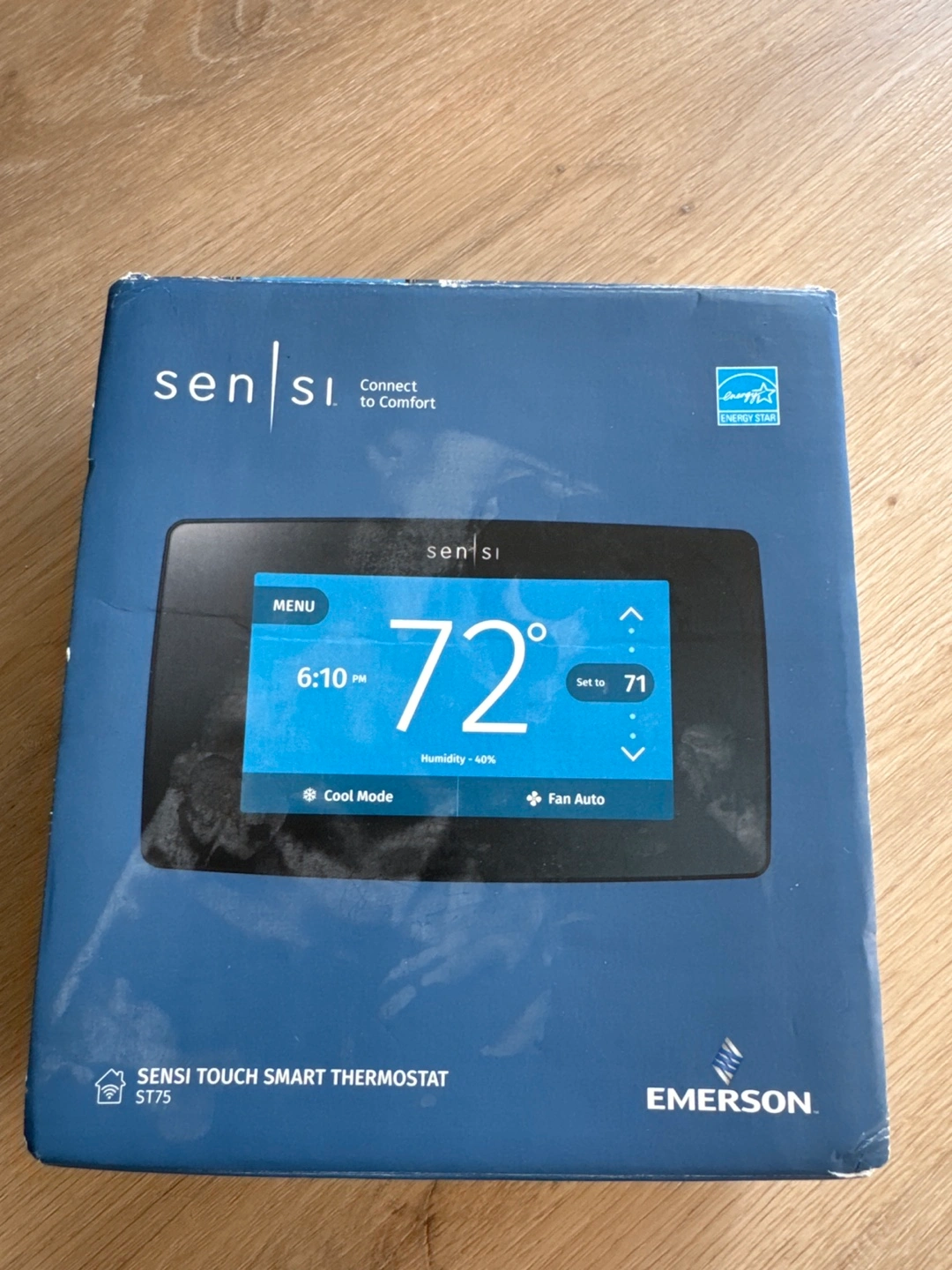 New, unopened Emerson Sensi Touch Smart Thermostat. Model ST75. Energy Star certified. Includes all components and instructions. Smart home compatible.