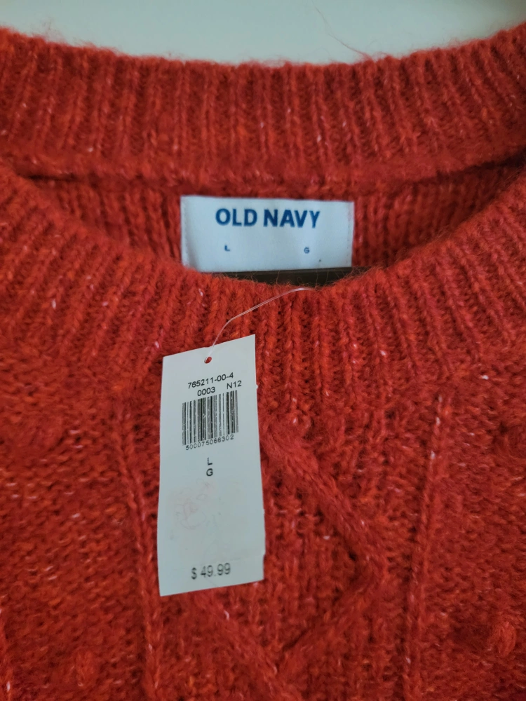 Women's red cable knit sweater. Size large. New with tag.