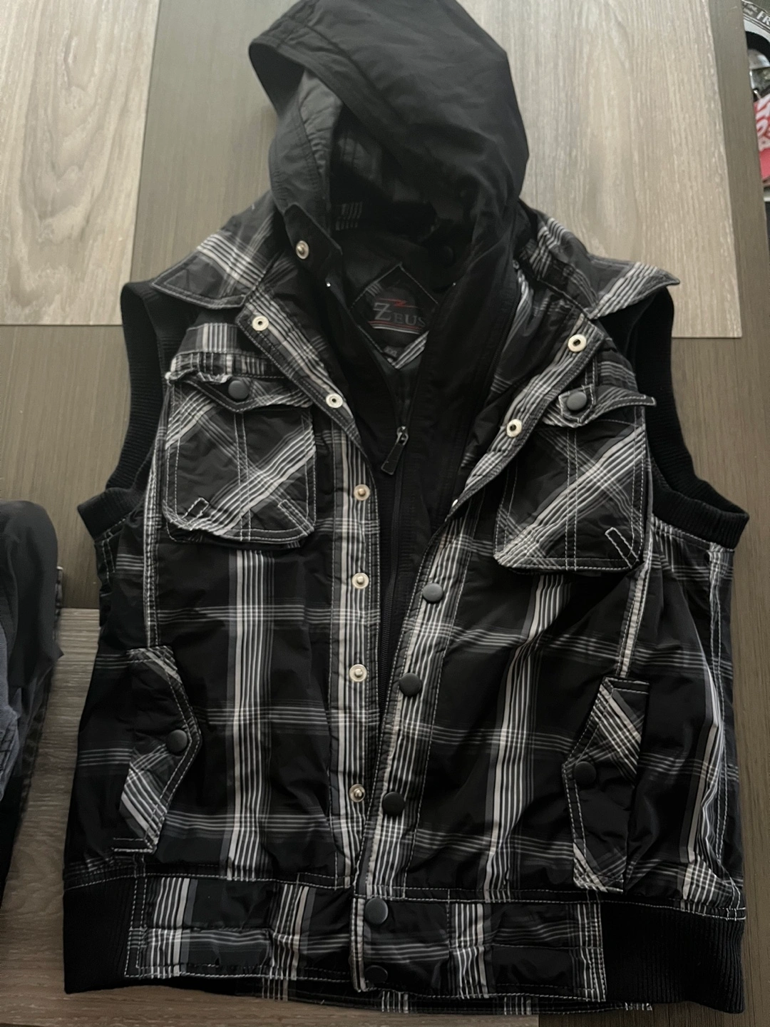 Detachable hood. Multiple pockets. Zip and snap closure also fits like a XL-L