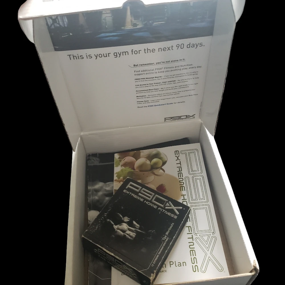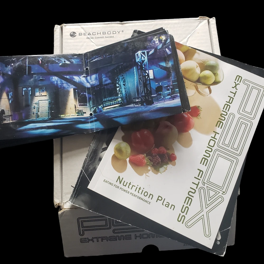 Complete P90X home fitness program. Includes workout DVDs, fitness guides, and nutrition plan. Beachbody product.