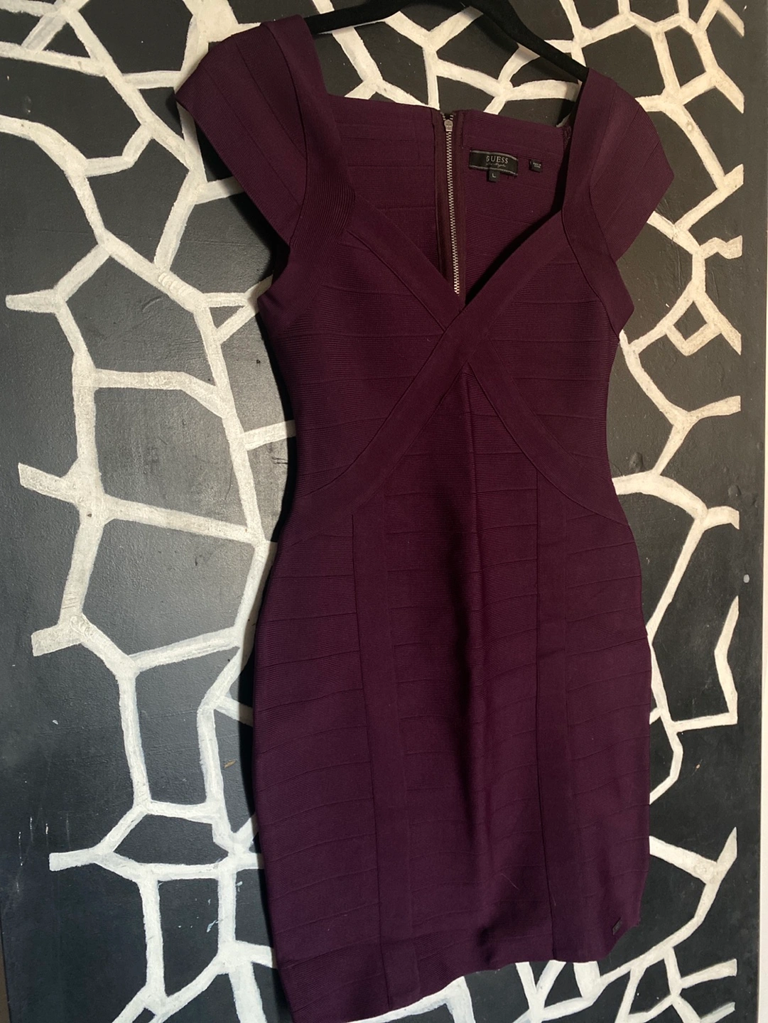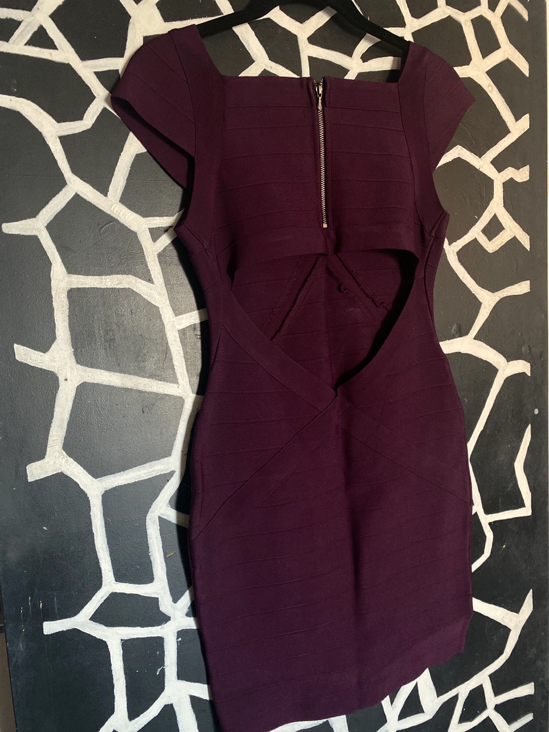 Mulberry bandage mini dress. Retro 2010’s Size large fits small. Features cap sleeves, sweetheart neckline, and keyhole back. Zipper closure.