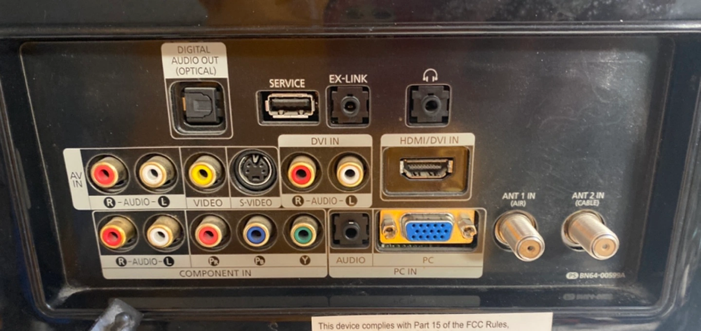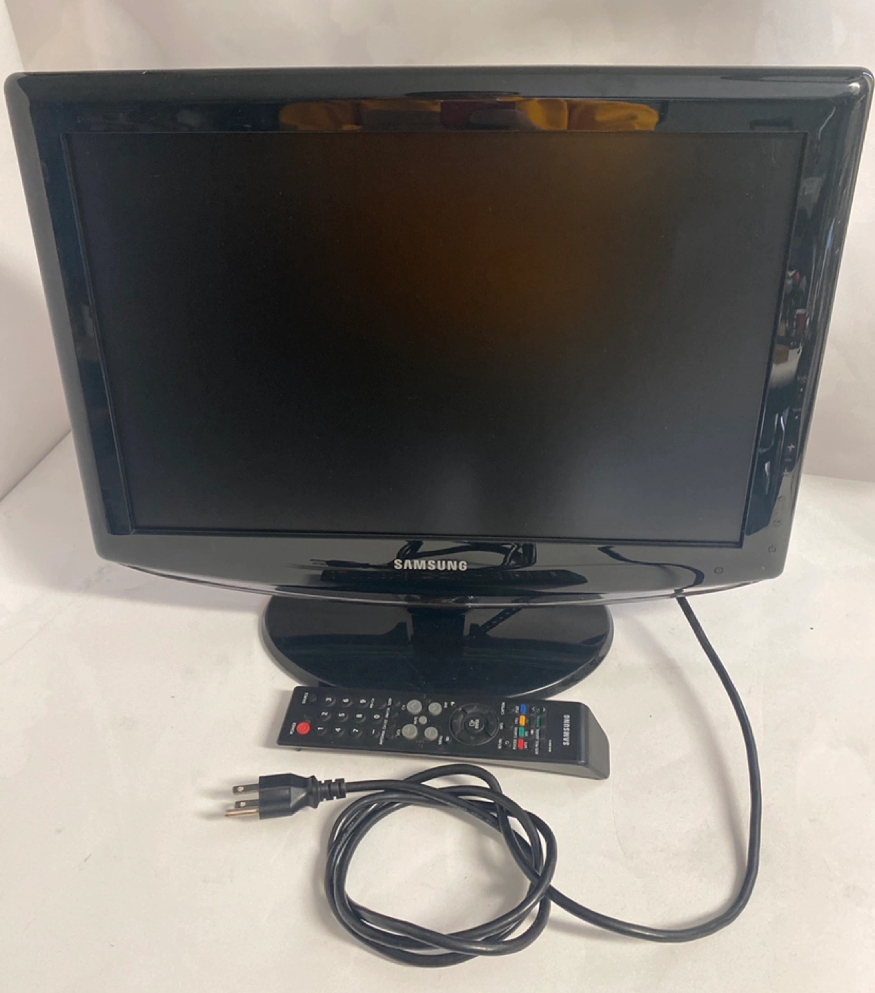 Small Samsung television. Black. Includes remote. Model LN-T1953HX. Various inputs. Power cord included.