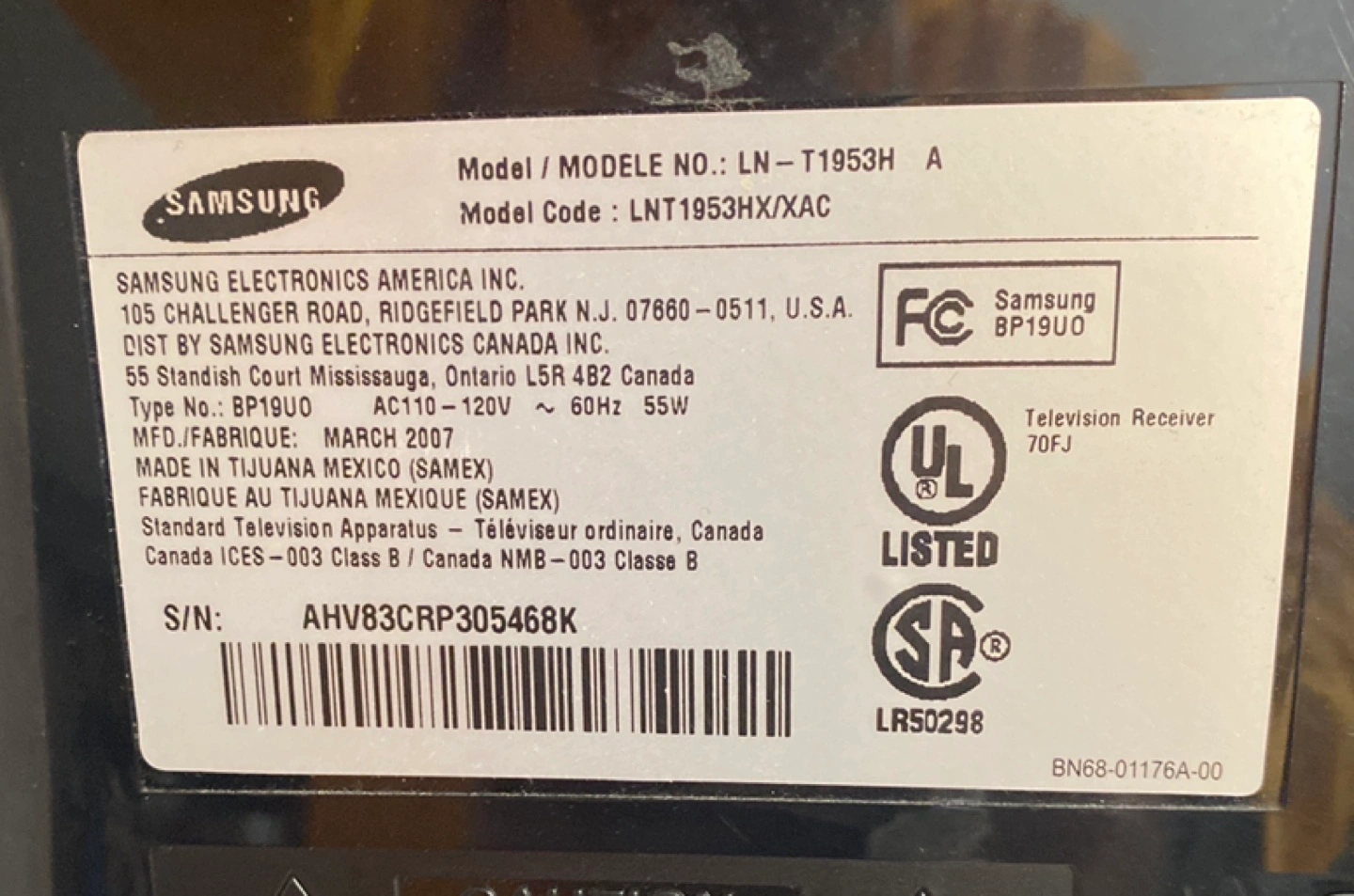 Samsung LN-T1953HX Television