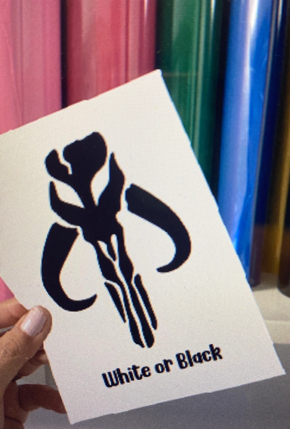 Vinyl decal featuring the Mandalorian symbol. Perfect for cars, laptops, or any smooth surface. 5x5 inches. Visit us www.ecorootstore.com