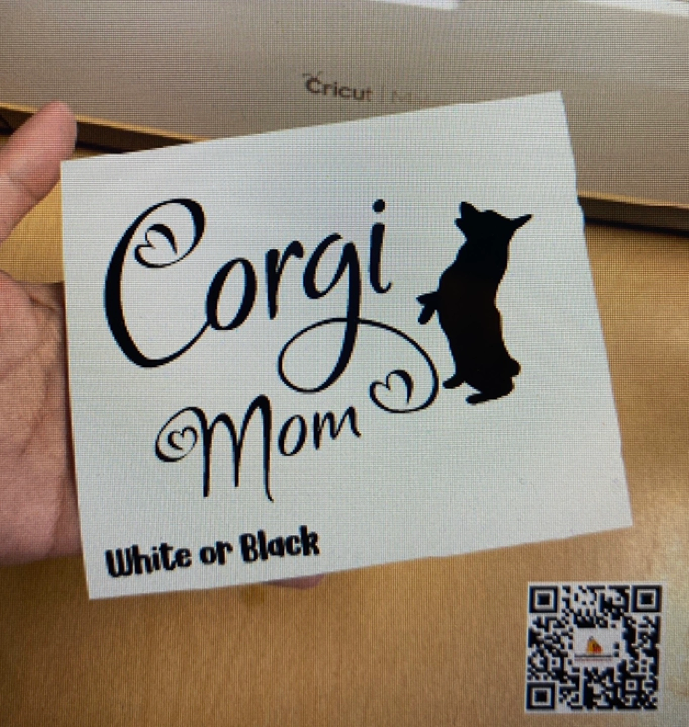 Adorable Corgi Mom decal. Features a silhouette of a corgi and the words "Corgi Mom". Available in white or black. Size 5x3 inches approx. Visit us www.ecorootstore.com