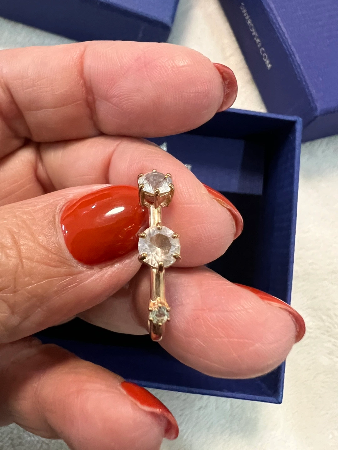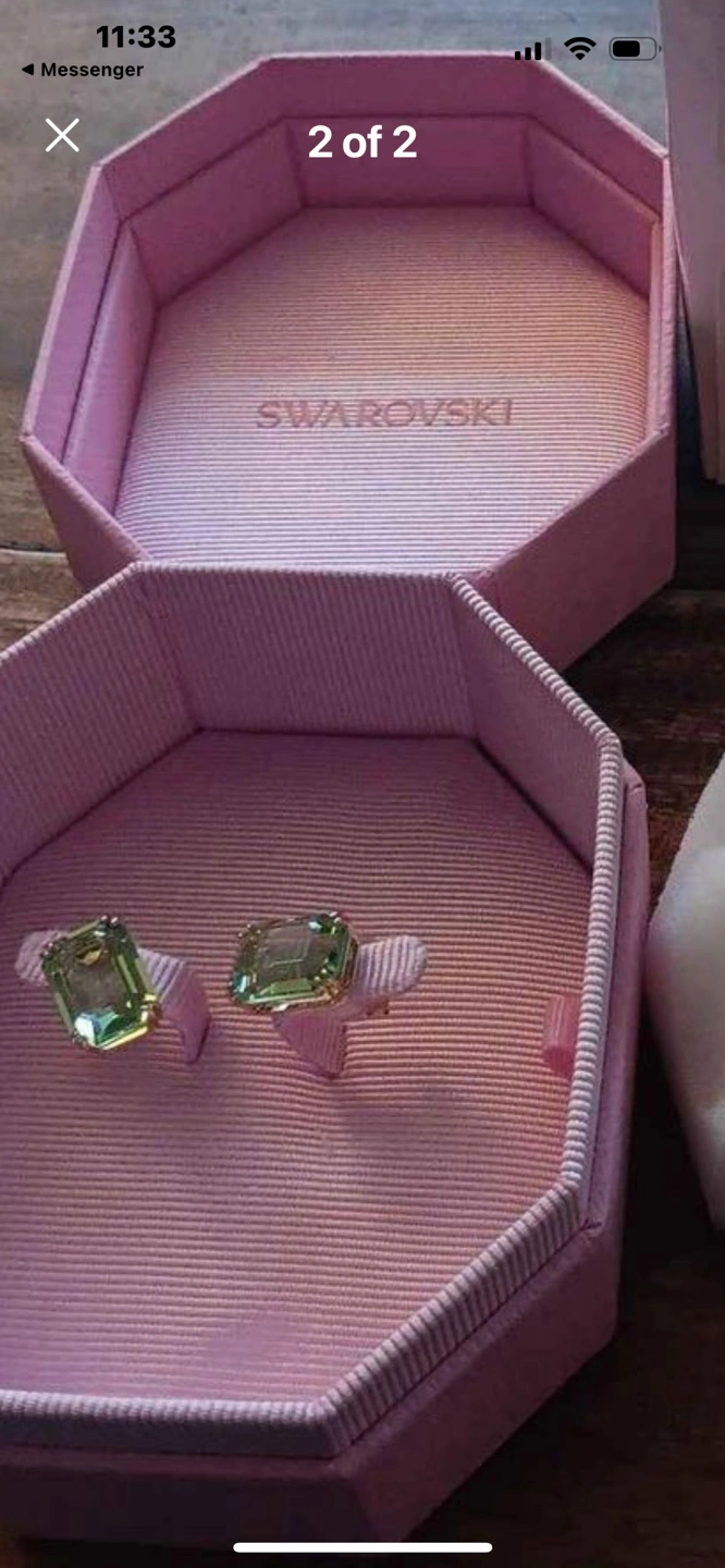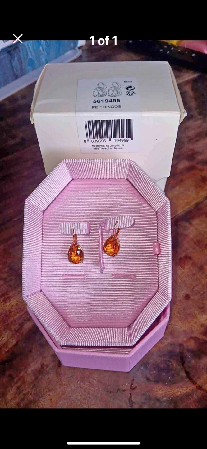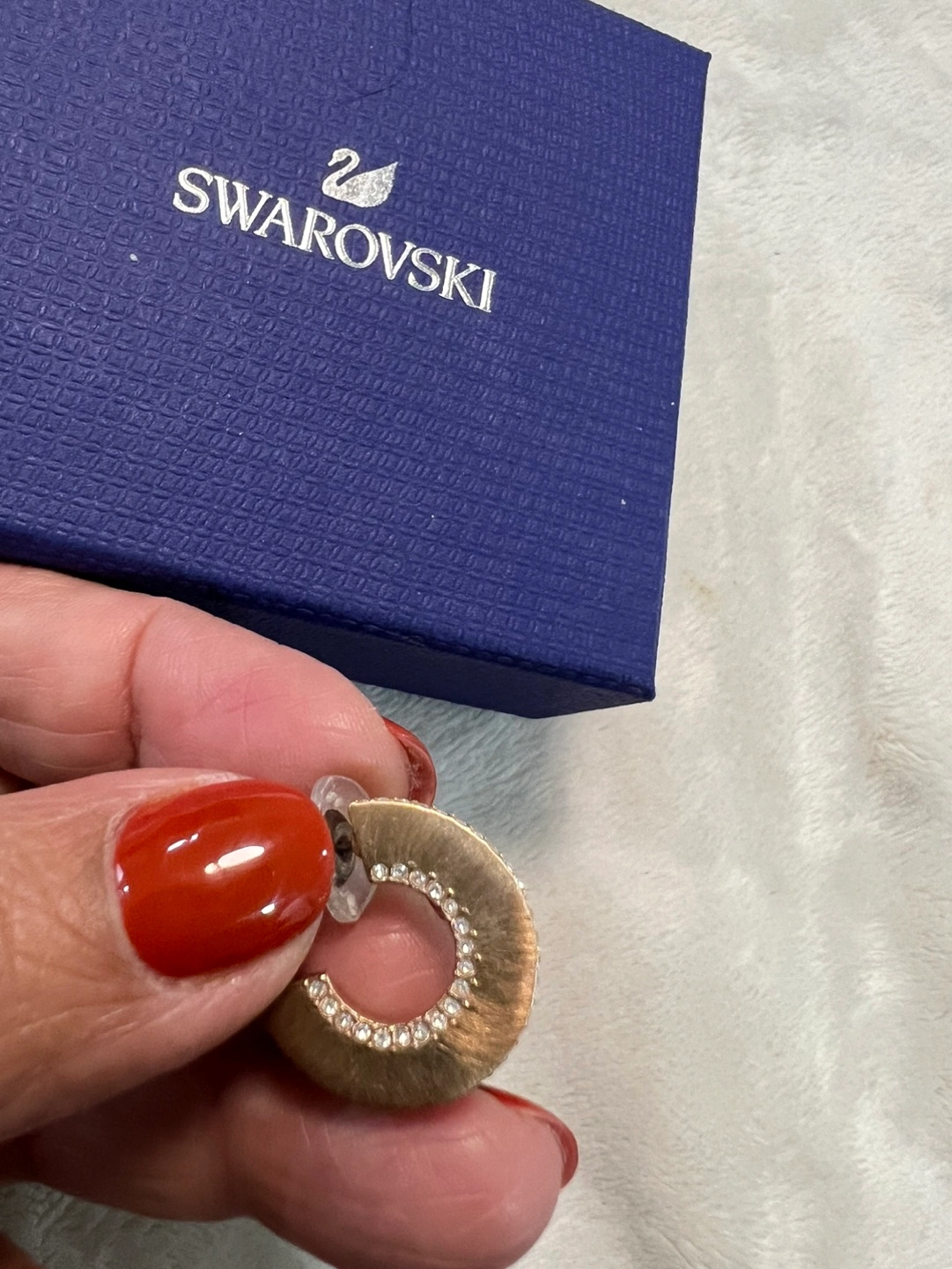 Three pairs of Swarovski earrings. Rose gold tone metal. Clear and coloured crystals. Various styles. Excellent condition. Sold as a bundle.45$ each