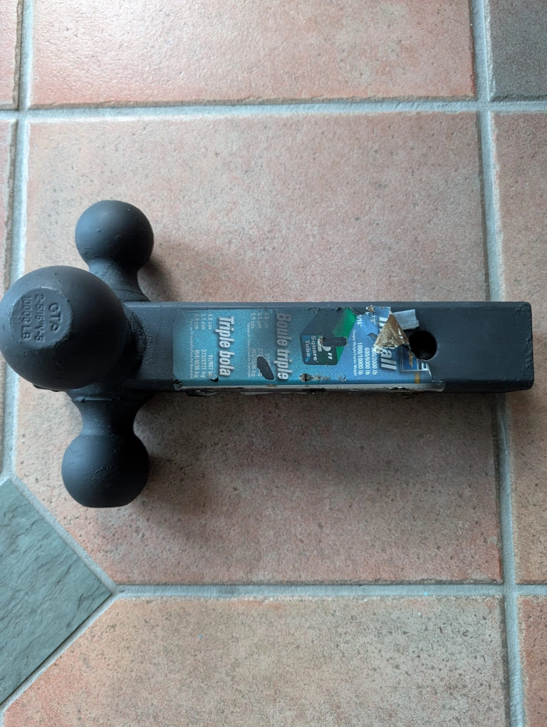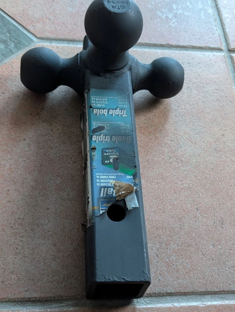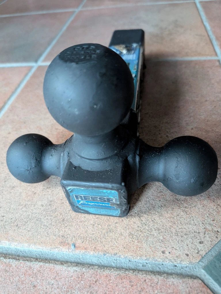 Used Reese triple ball hitch. Features three different sized balls. Good for various towing needs. Shows some wear.