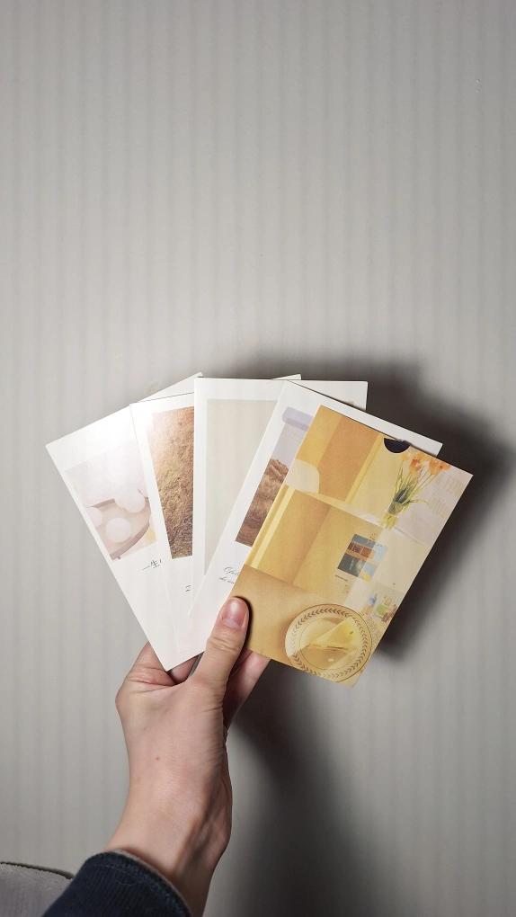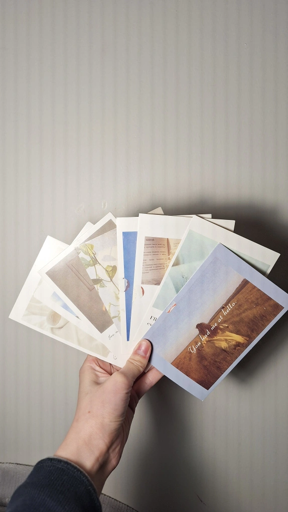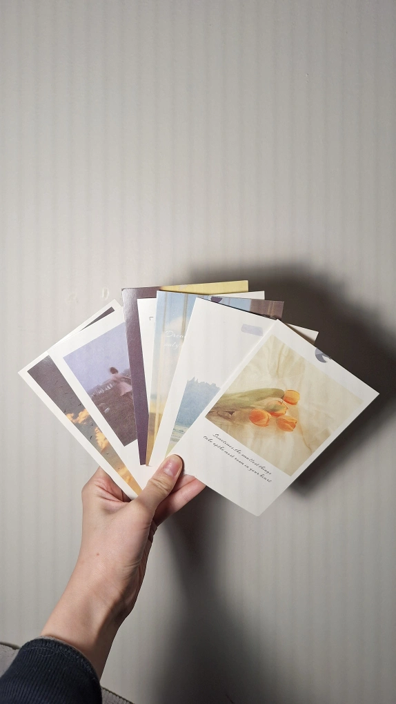 some postcards have residue stickers on them, some grammar mistakes on the cards