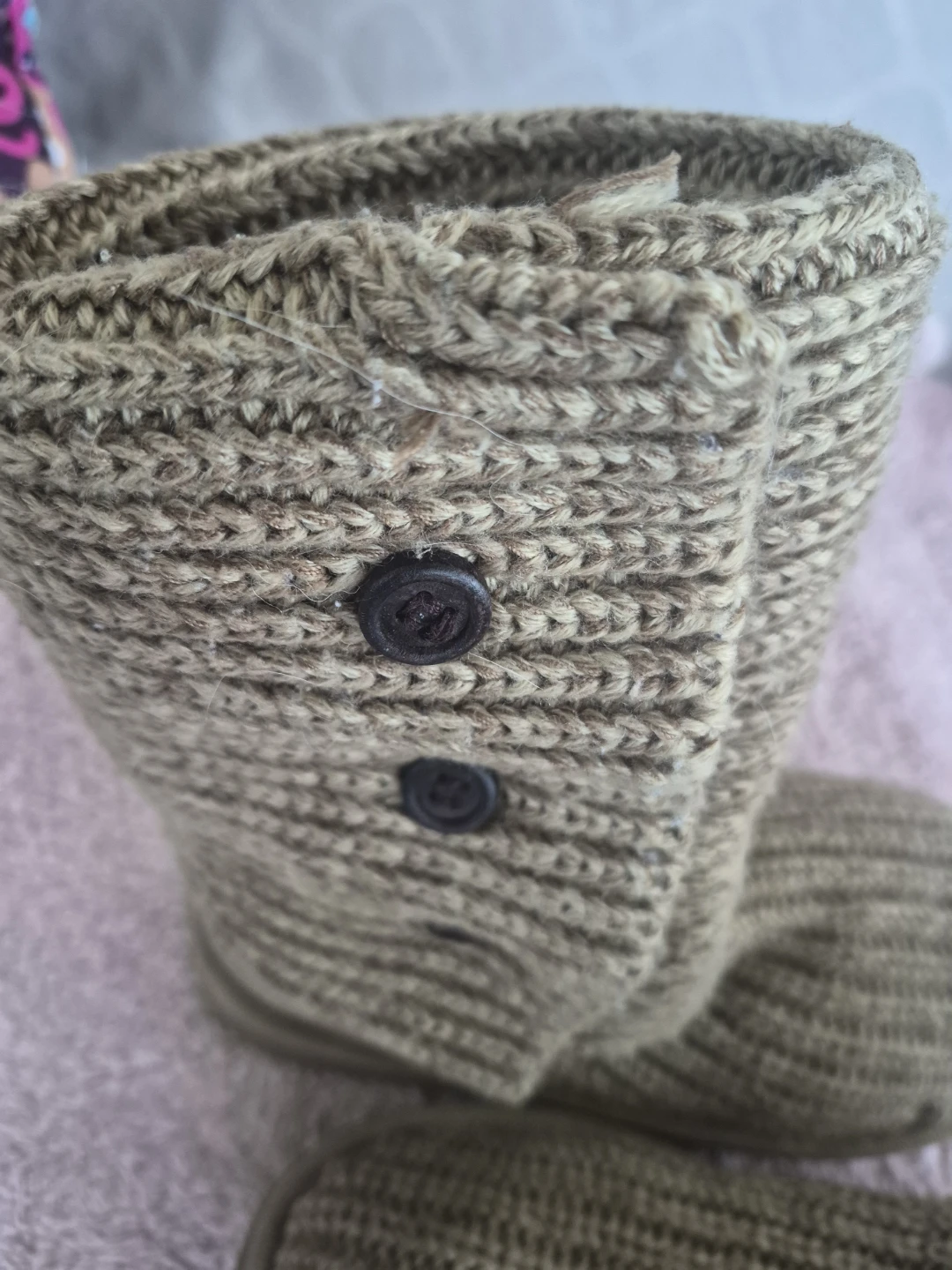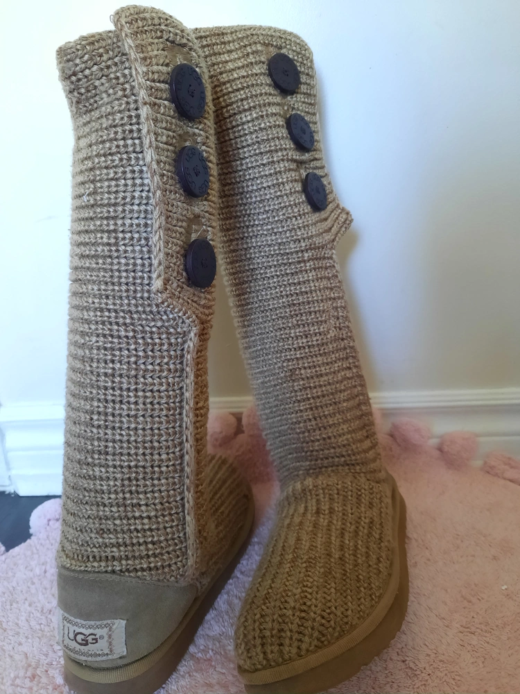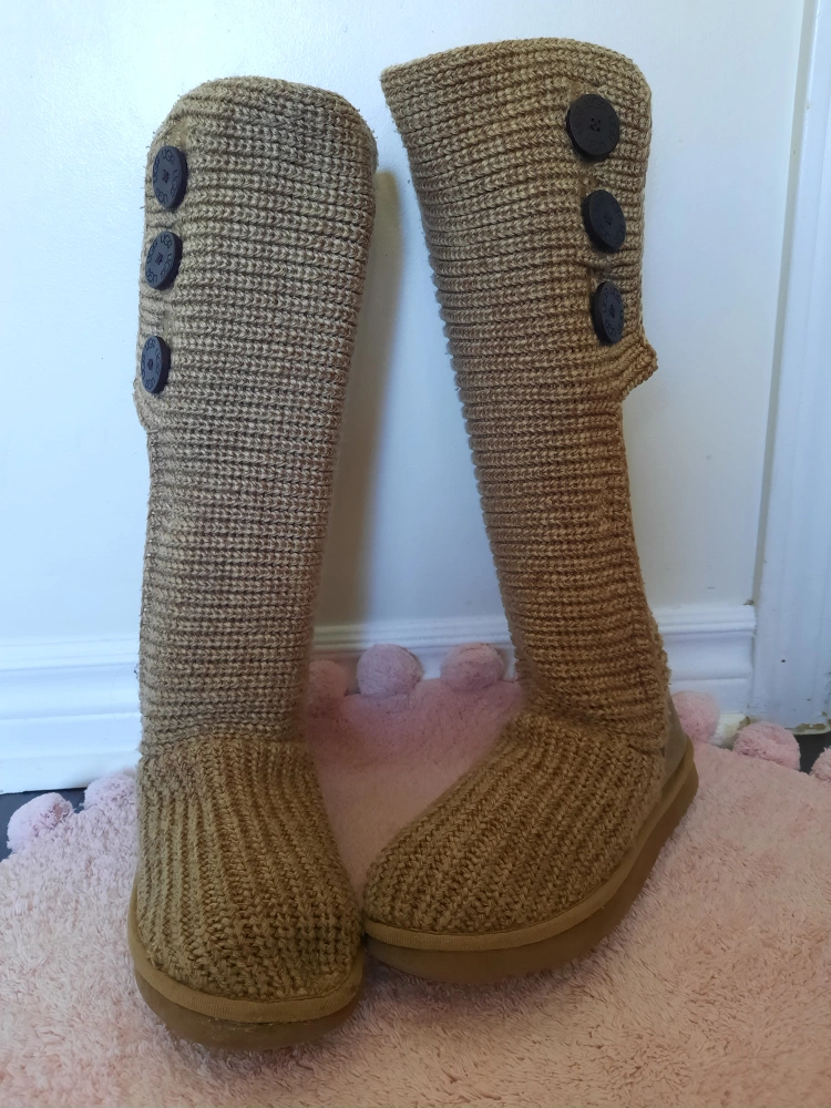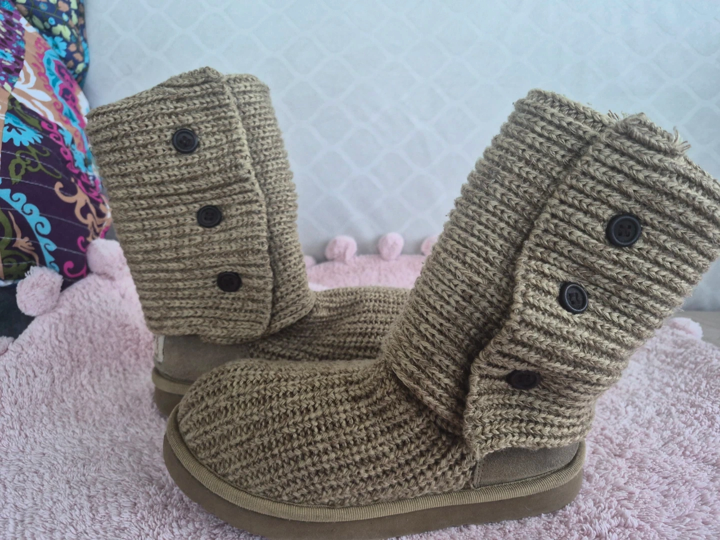 Women's UGG tall boots. Knit upper. Brown colour. Button accents. Good condition.