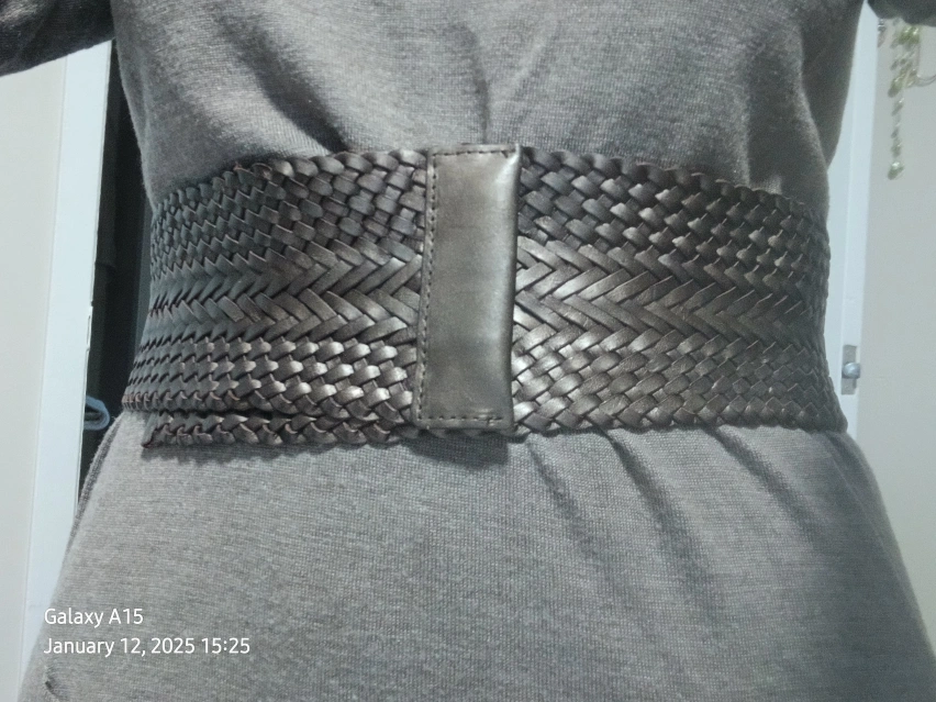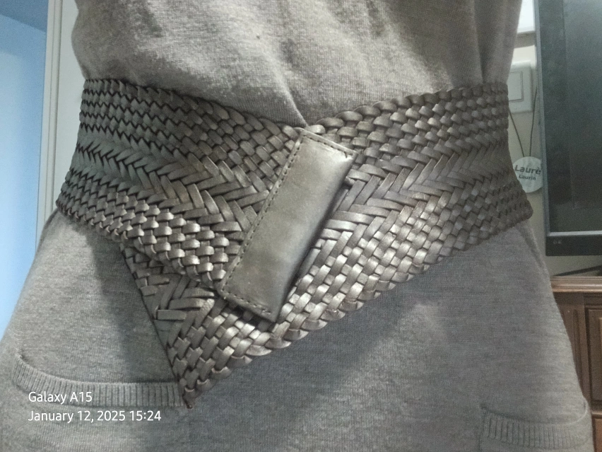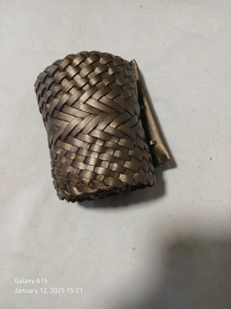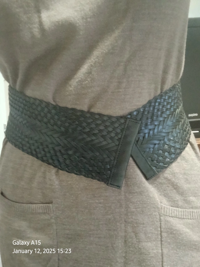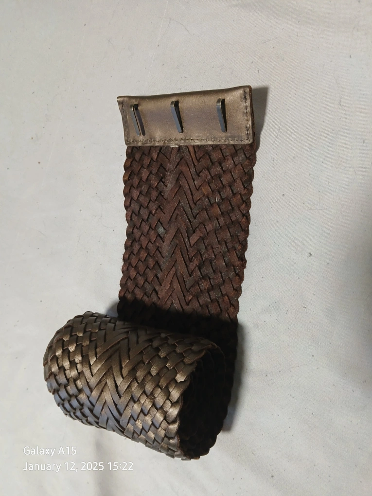 Unique wide woven leather belt. Available in black and bronze. Features a unique woven design and a simple closure. Stylish accessory for any outfit. $30 for the set of two belts. Pick up only.