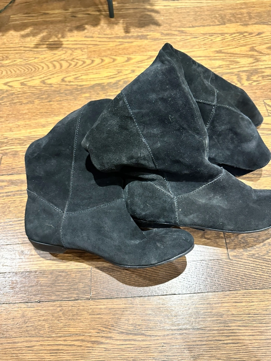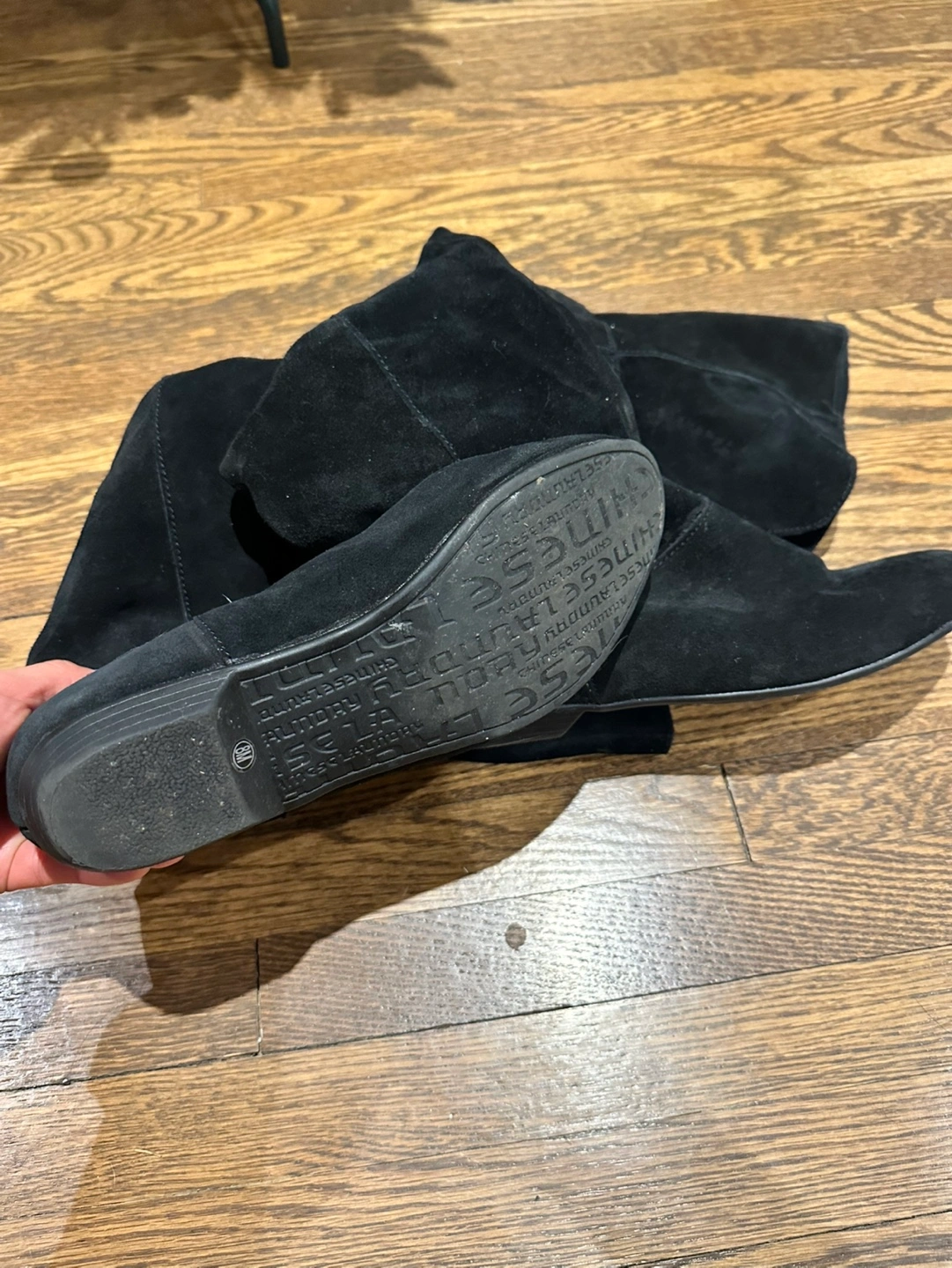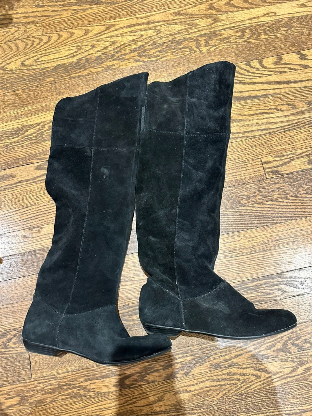 902Size 8, fake suede material Goes over your knees Never worn outside, they’re a bit big for me. free :)