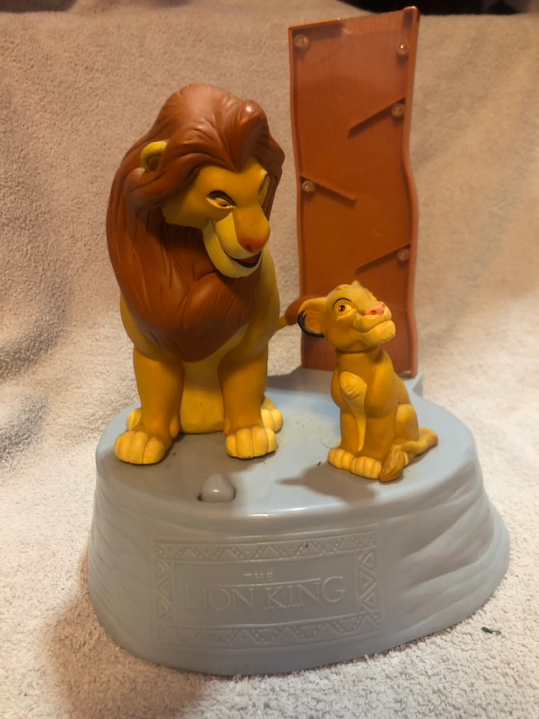 Vintage 1994 Mufasa and Simba Lion King Electronic Figurine Piggy Bank.