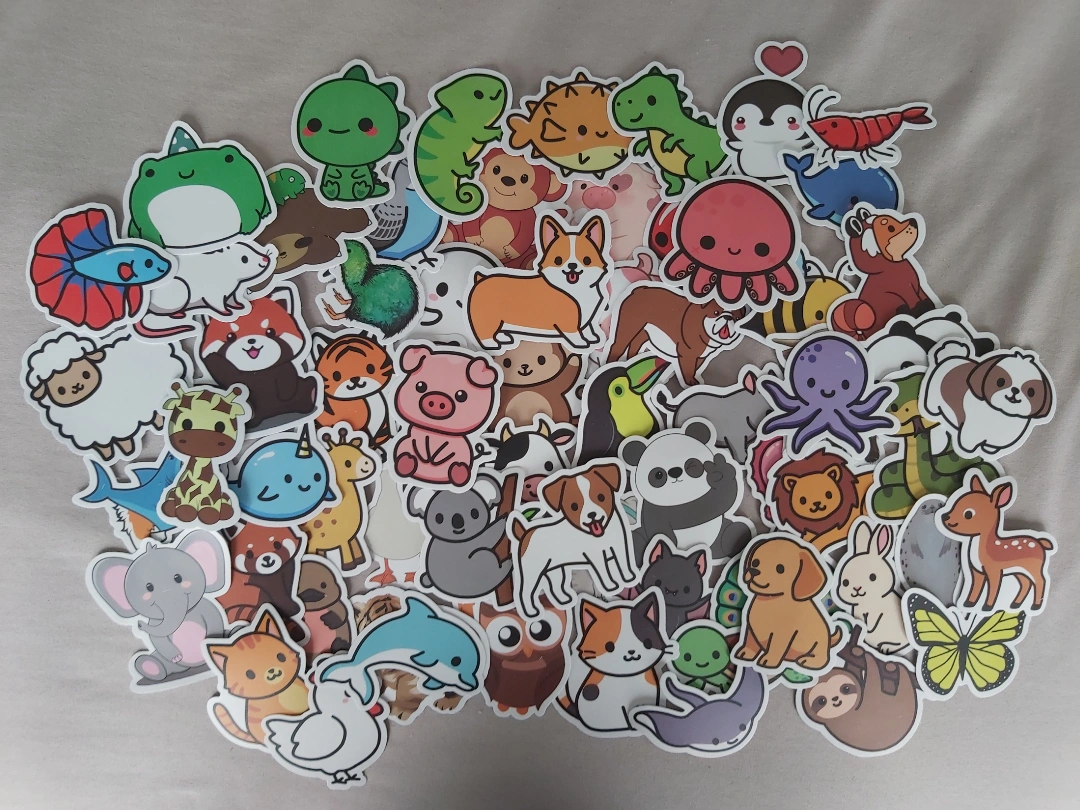 Cute animal stickers. Many different animals. Perfect for decorating laptops, water bottles, journals, etc. Great for crafting or scrapbooking.