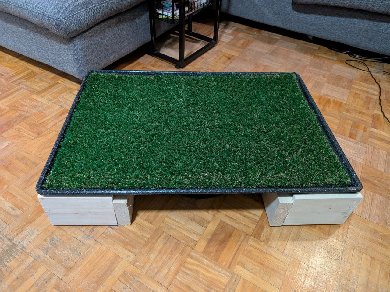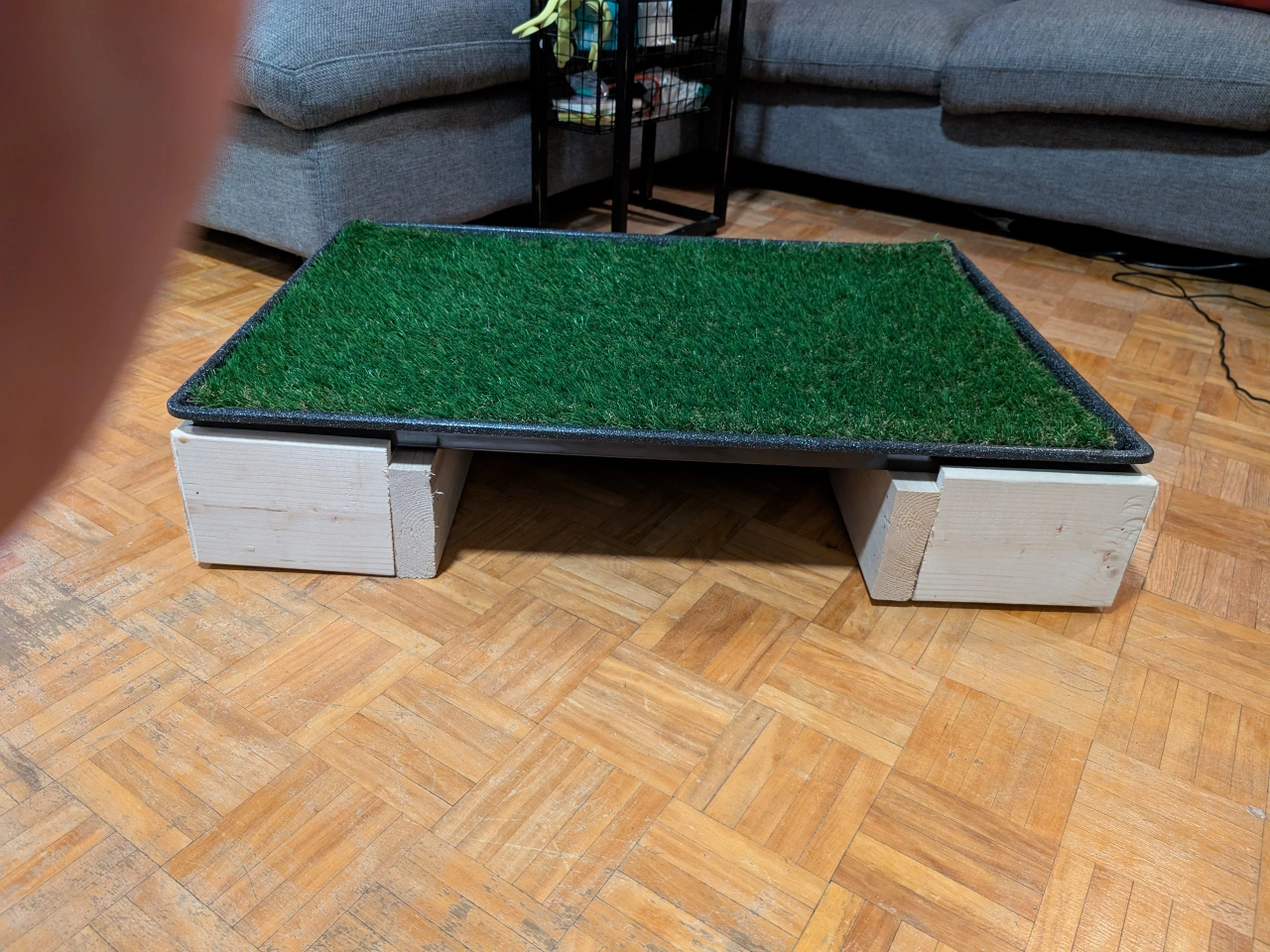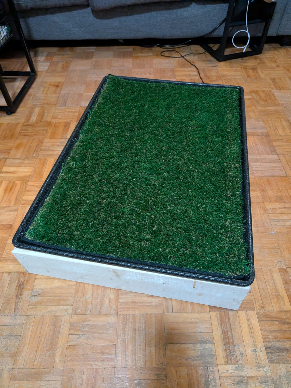 227Large volume indoor potty pad system for long working hours, living in an apartment or if you have a dog with mobility problems/illness. Washable top surface 23" x 34" drains through mesh grid into a 8L oil drain pan for easy disposal. Made for a sick dog who's symptoms included excessive peeing but never got used before dog passed. NEVER USED! Comes with a spare grass mat. For large dogs