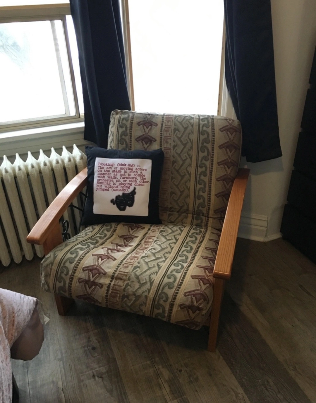 I got it off karrot myself; it's really sturdy, has a really nice eclectic aesthetic and the repair on it (the support beams need to be replaced/strengthened) is easy for anyone who's worked with wood before, but I kept putting the fix off, and now I'm moving and my new place is too small for one more chair🙃 (believe me, I would NOT have given it up otherwise). I hope it becomes useful for someone!