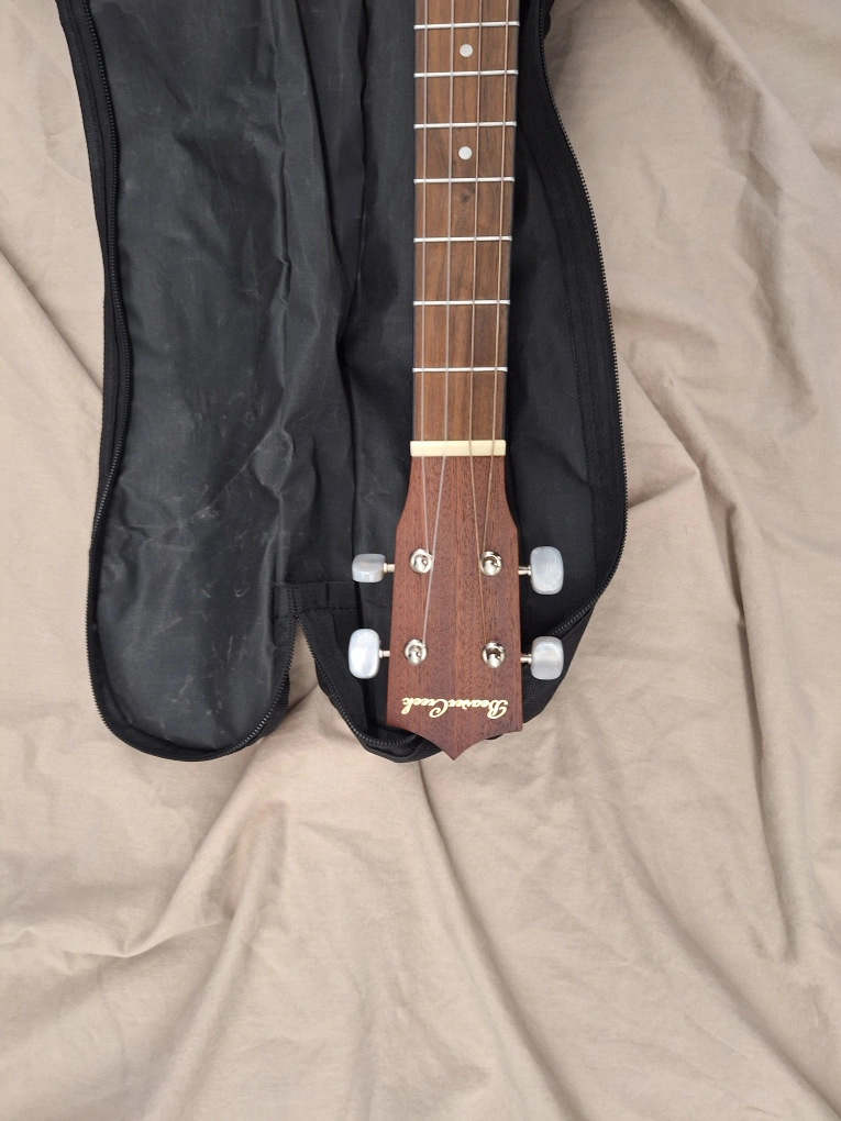 Beautiful concert baritone ukulele. Solid wood body. Includes a gig bag for transport and storage. Great condition.
