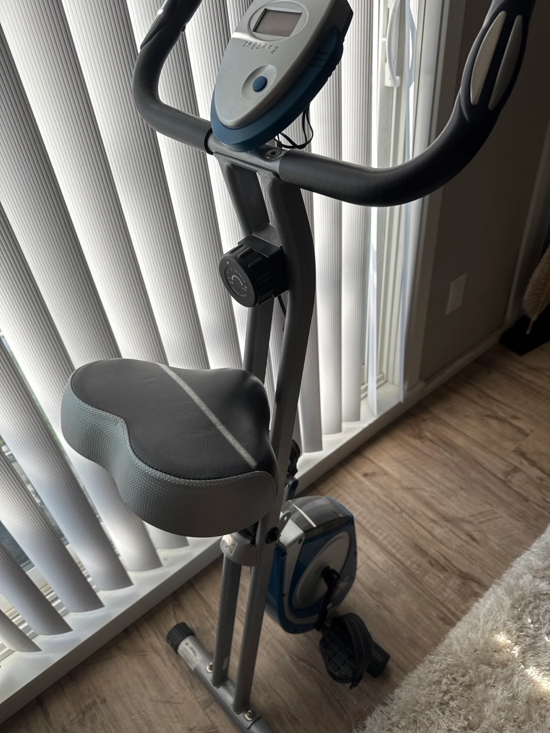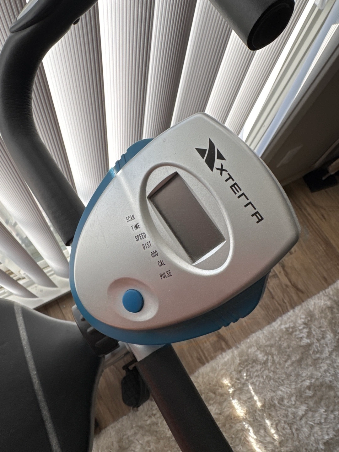 Used Xterra exercise bike. Good condition. Features adjustable resistance and digital monitor. Compact design, ideal for home workouts. Includes seat and handlebars.
