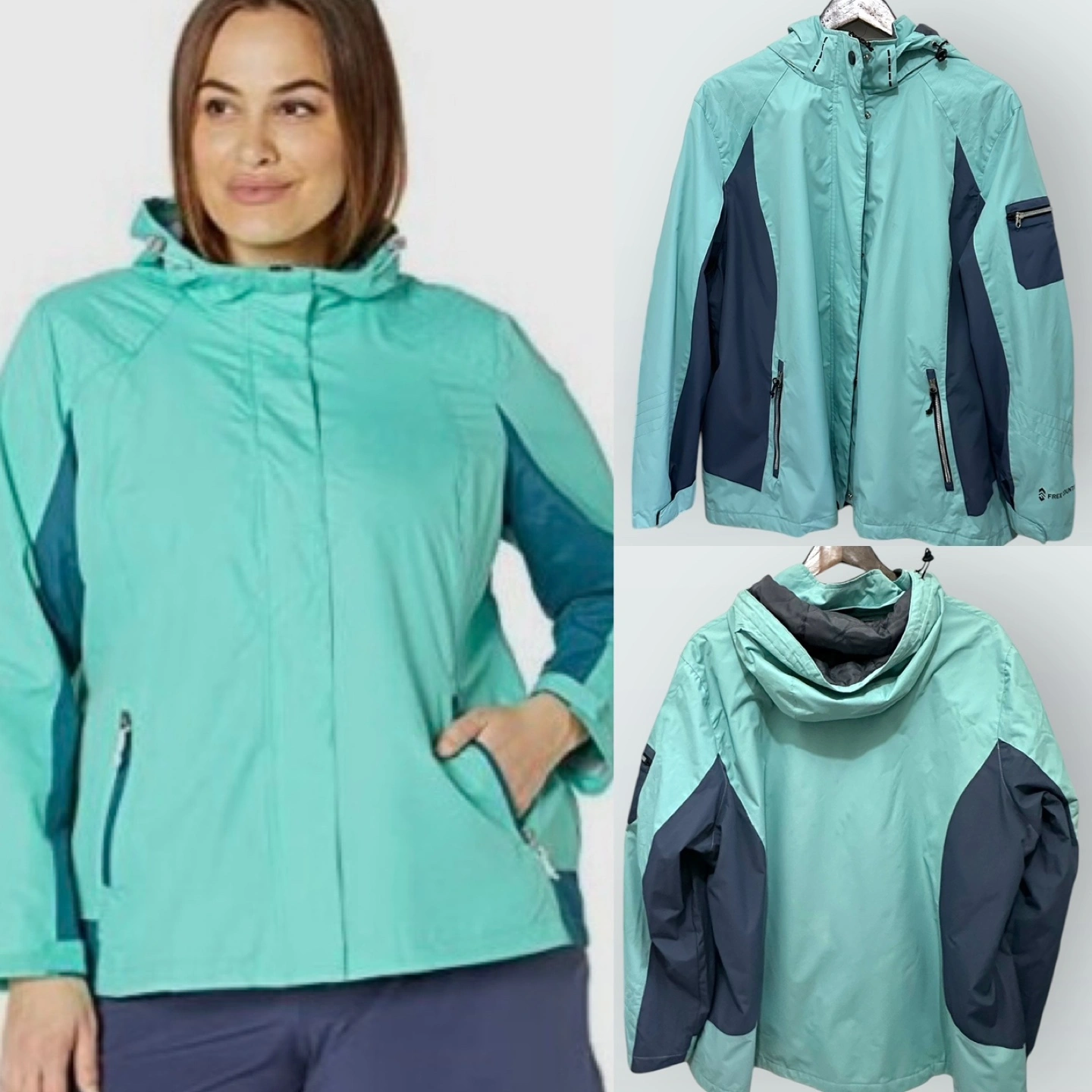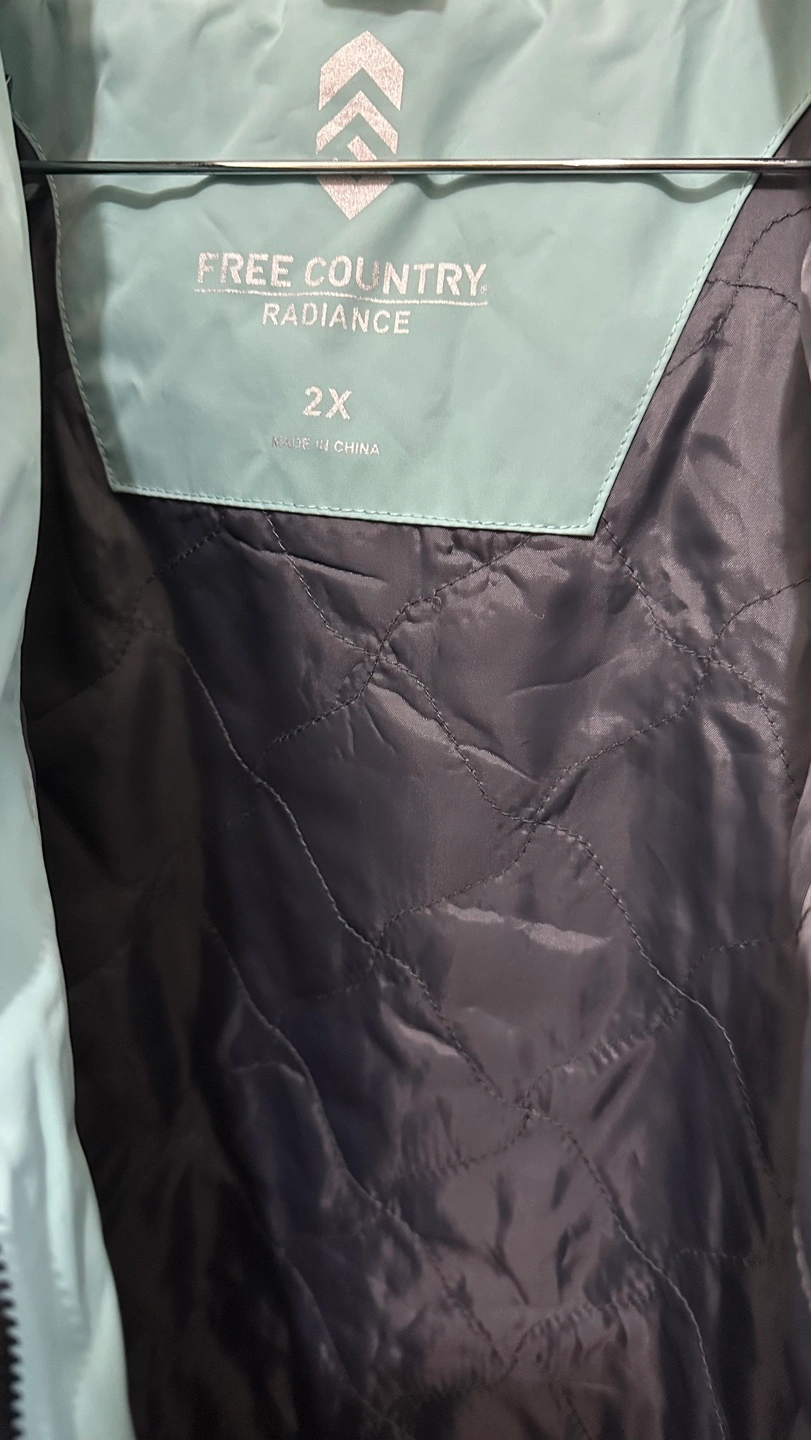 • Excellent used condition. Like new. No stain… • Material: 100% Polyester (Outer shell & Lining) • Design: Heavyweight with mid-length coverage • Protection: Water-resistant and wind-resistant Features: • Attached hood with adjustable drawcord • Snap and zipper front closures • Storm placket for added protection • Adjustable wrist cuffs • Two zippered side pockets and one arm zip pocket • Care Instructions: Machine washable (gentle), tumble dry low, do not bleach or iron Ideal For: Perfect for skiing, outdoor adventures, or casual wear in chilly weather. Stay warm without overheating, thanks to the breathable mesh lining. Free Country women’s jacket, plus size winter coat, water-resistant 3-in-1 jacket, heavy-duty ski jacket, windbreaker coat plus size. Measurements: PTP: 27.5” Body Length: 28” Sleeve Length: 24.5” Bottom Hem Width: 30”