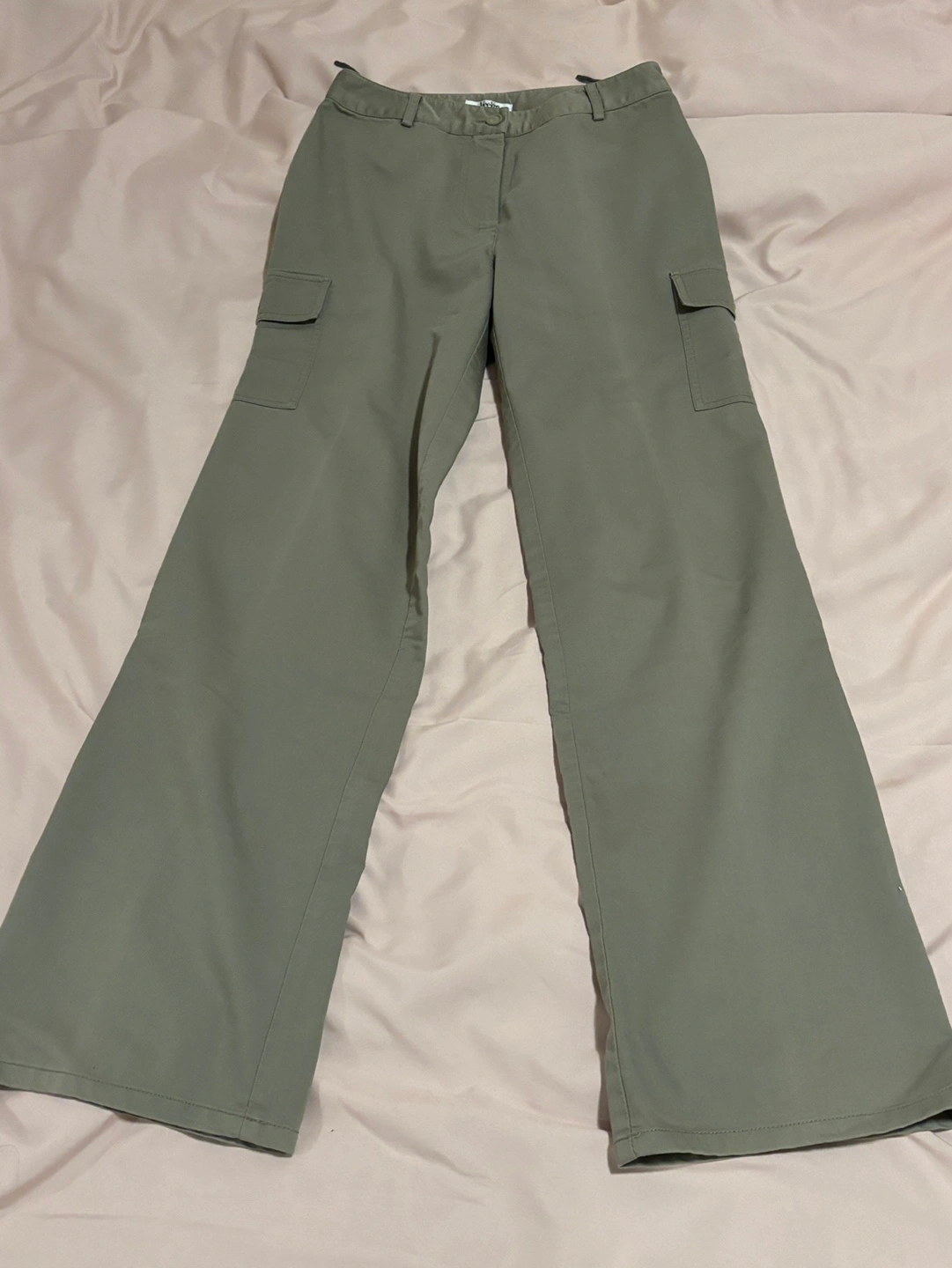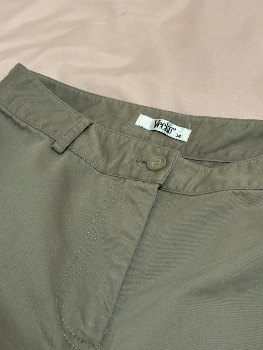 Vintage Veeko Cargo Pants. Olive green, mid-rise, straight leg. Dress pant material. Listed as Size 34 but best fits XS/S. Pockets are functional.