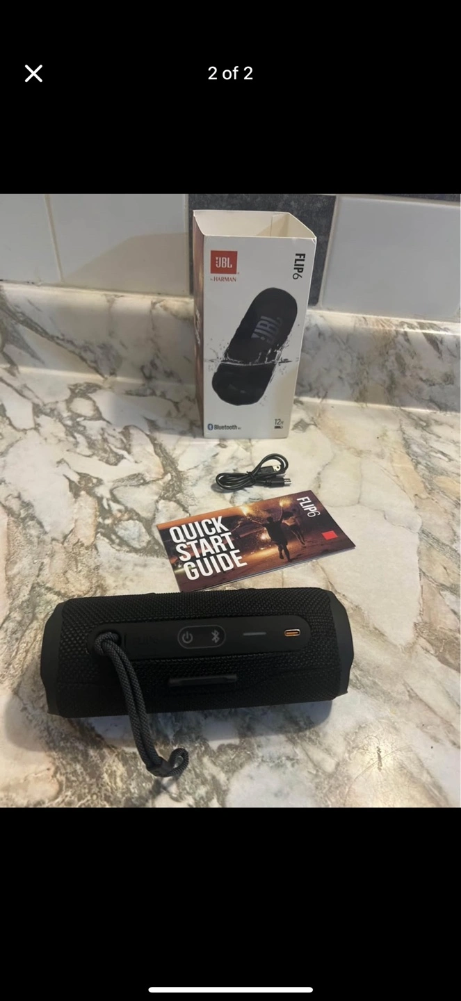 Portable Bluetooth speaker. Great sound. Includes charging cable and instructions. Brand new in box.