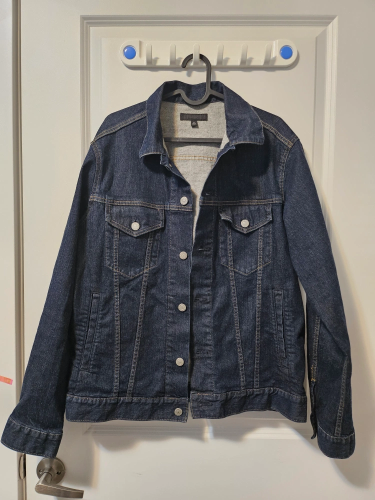 109Dark wash denim jacket. Classic style. Long sleeves.