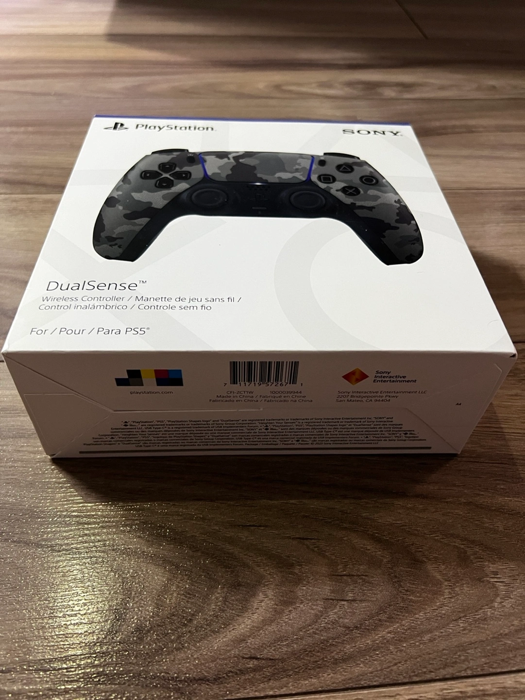 Brand new, sealed in box. PlayStation 5 DualSense wireless controller. Galactic Camo design. Includes built-in microphone.