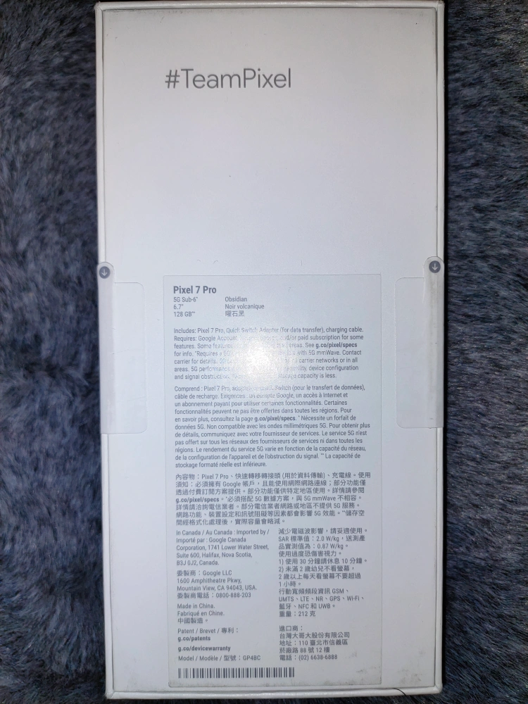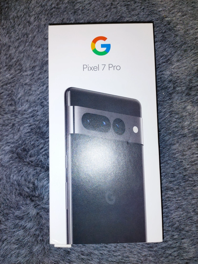 Brand new, unopened Google Pixel 7 Pro smartphone. Sealed box. Obsidian colour. Includes phone, charger, and cable. 5G capable. 128 GB storage.