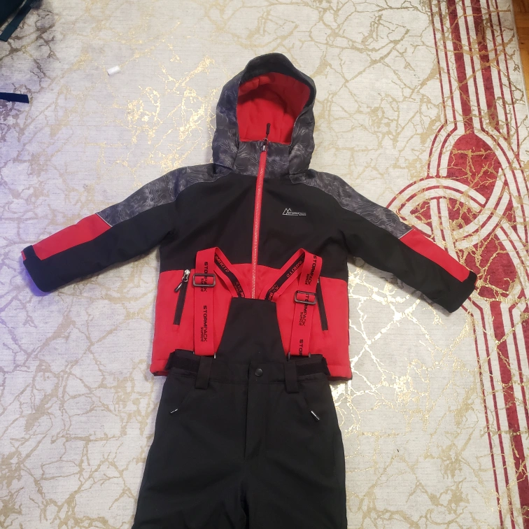 Brand new Red and black snowsuit. Includes jacket and snow pants. Water resistant. Great for winter activities. Size 5.Neve used for sale only $60 for more ink contact me anytime ๐ ๐