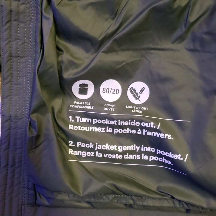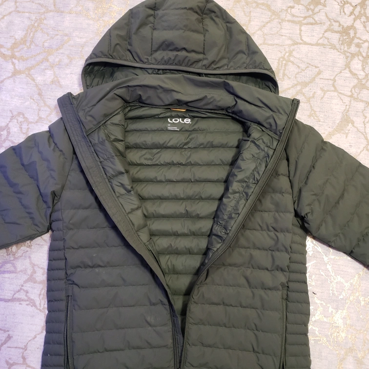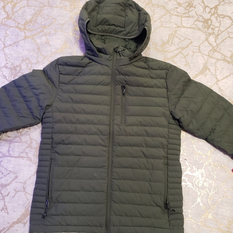 Brand new Lightweight, packable hooded puffer jacket. 80/20 down duvet. Features a zipper closure and side pockets. Great for layering.Never used for sale only $47 for more info contact me anytime ๐ ๐