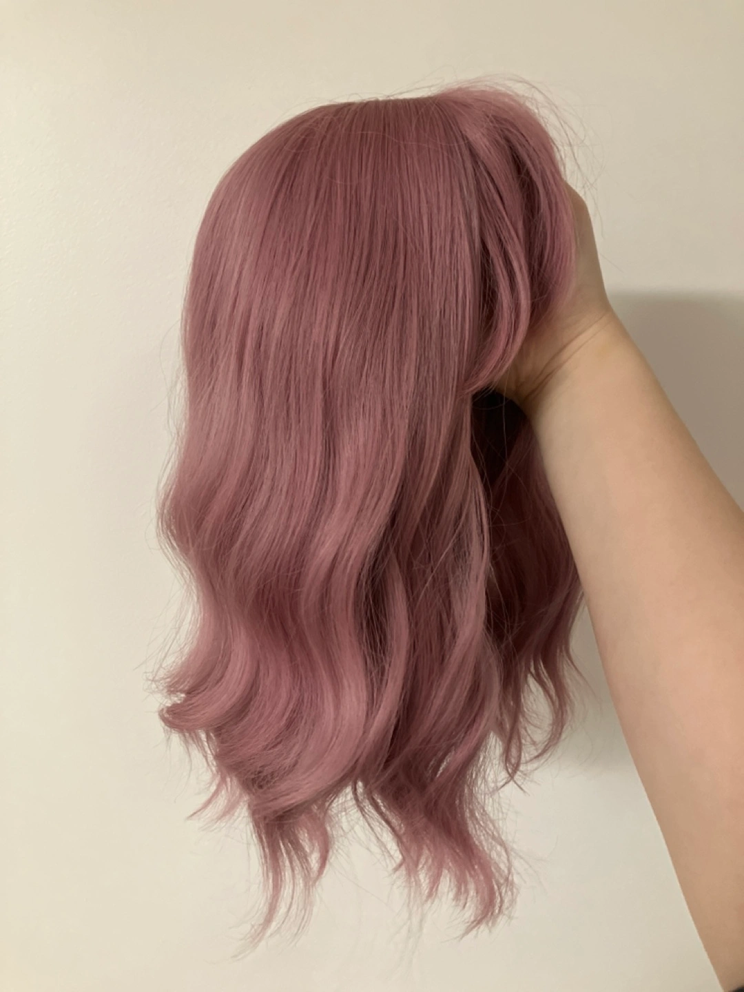 Wavy, shoulder-length bob wig. Dusty rose colour. Synthetic fibres. Great for cosplay or everyday wear.