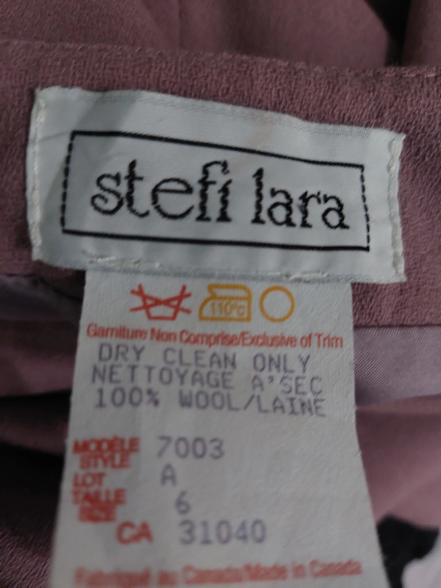Dry clean only.Made in Canada.