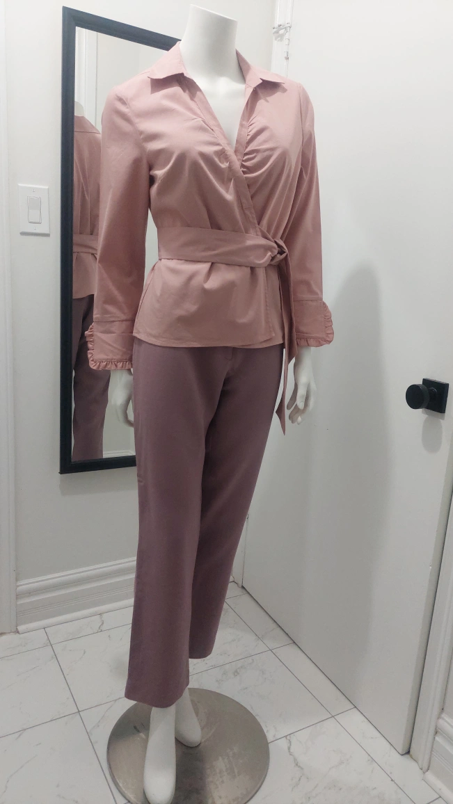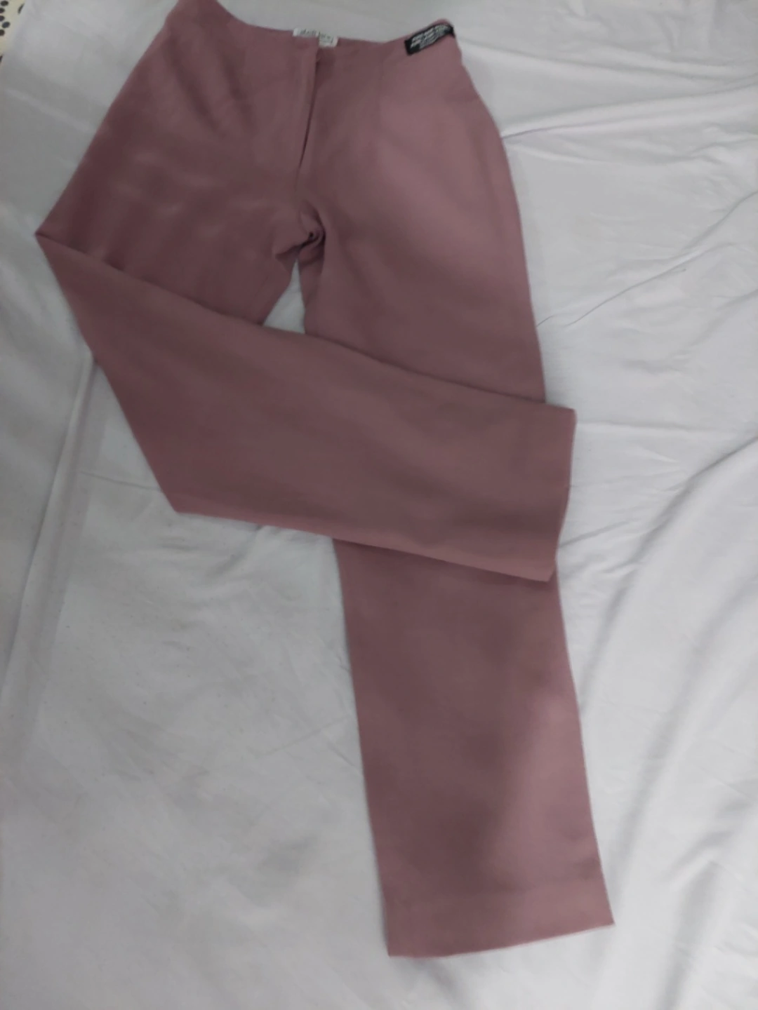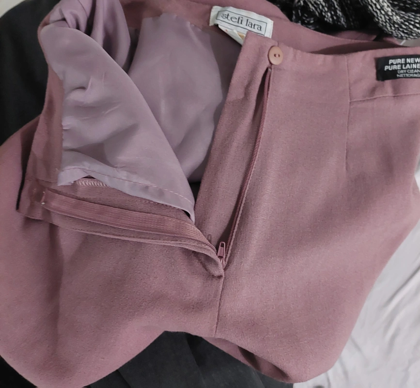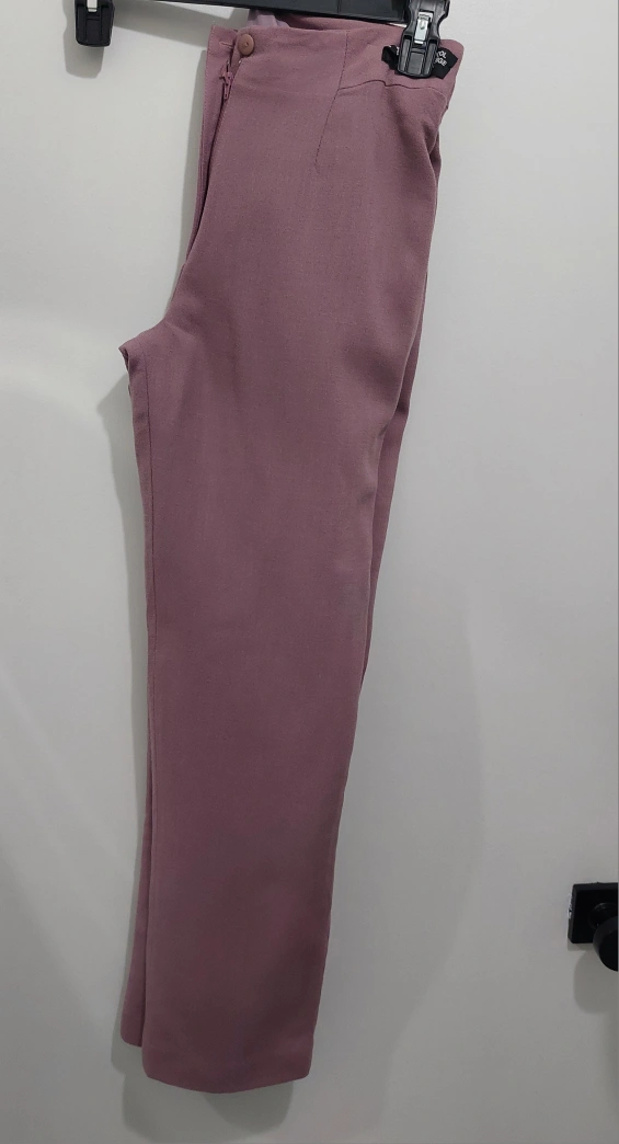 Dusty rose-coloured wool trousers. Zipper and button closure. In excellent condition.