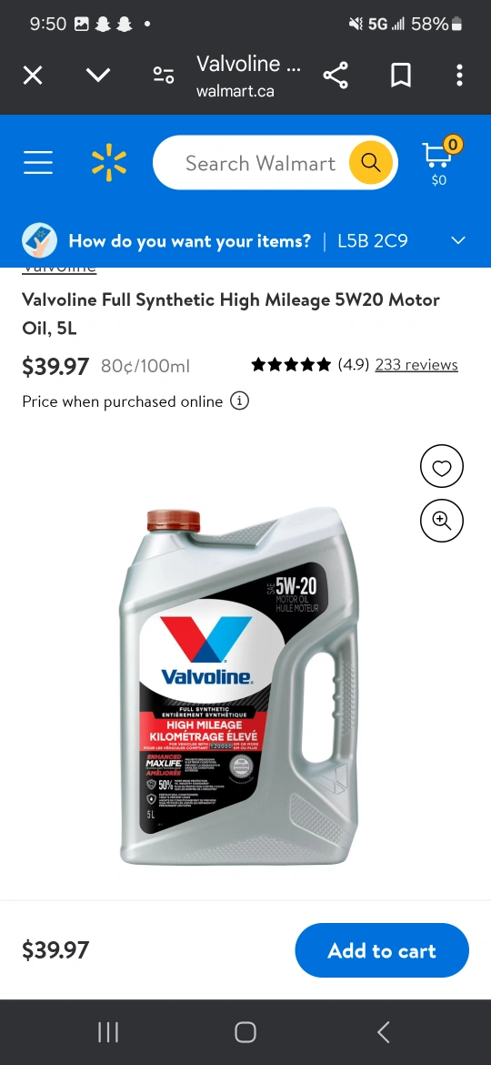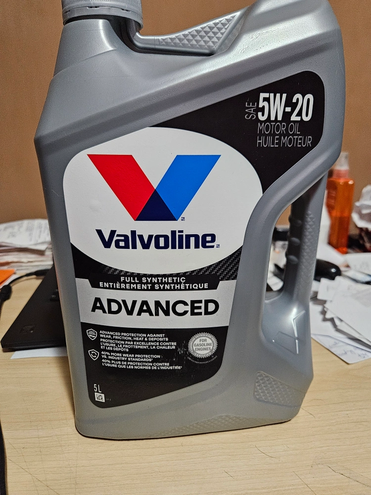1025L jug of Valvoline Advanced Full Synthetic 5W-20 motor oil. New, unopened. Currently Retails for $45 with tax I'm selling for $35 cash no tax