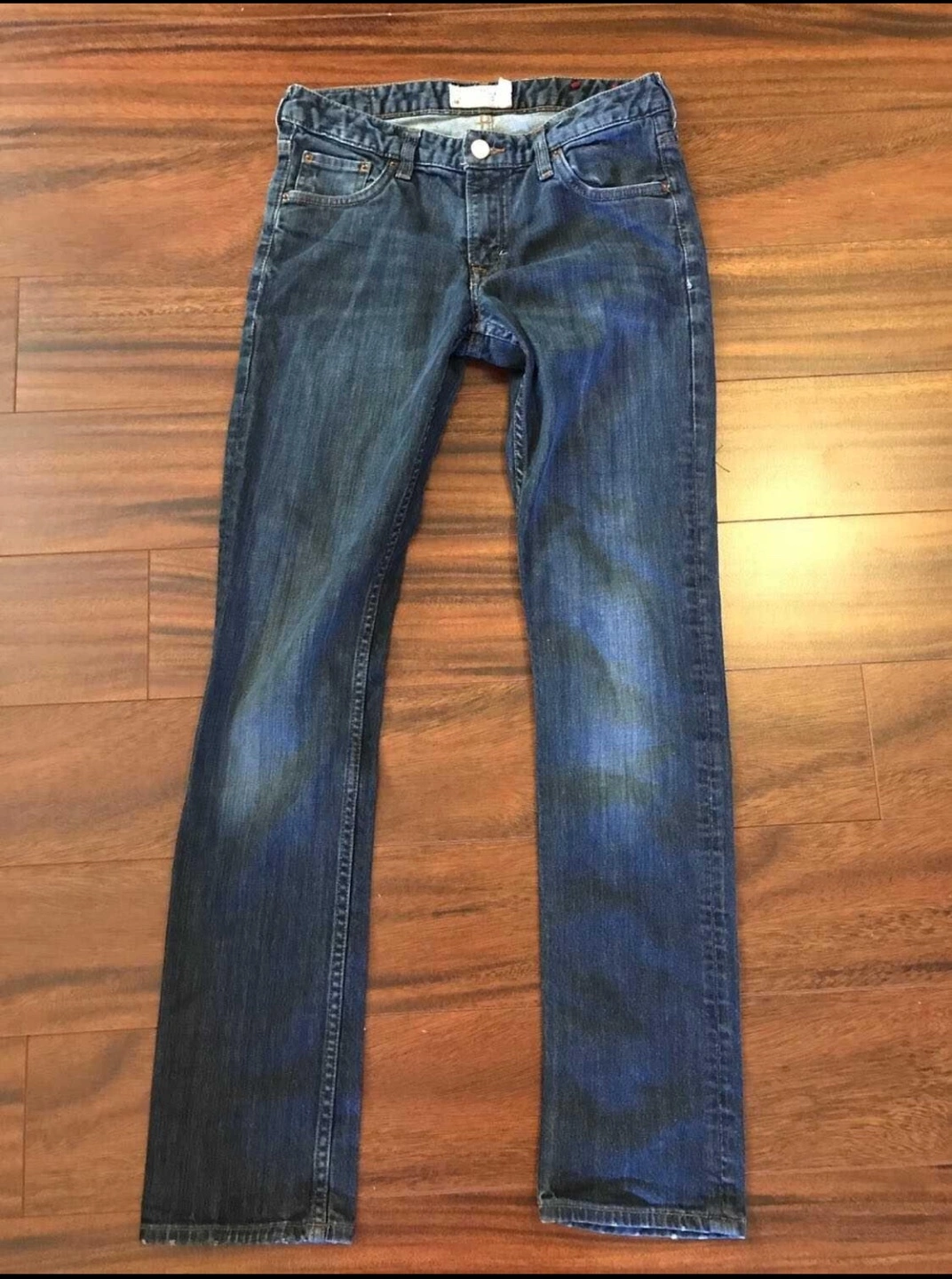 Excellent condition! Straight leg, zip fly. Medium wash blue denim.
