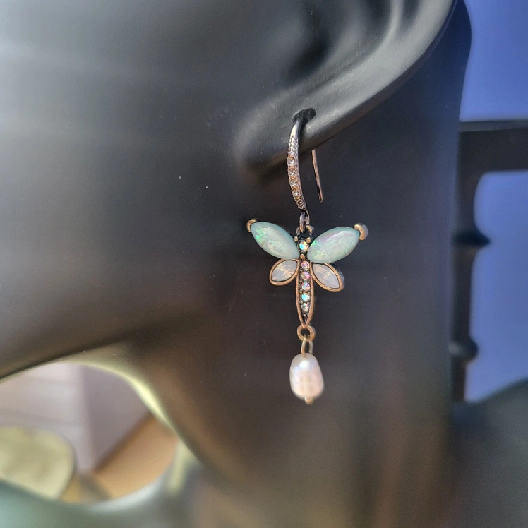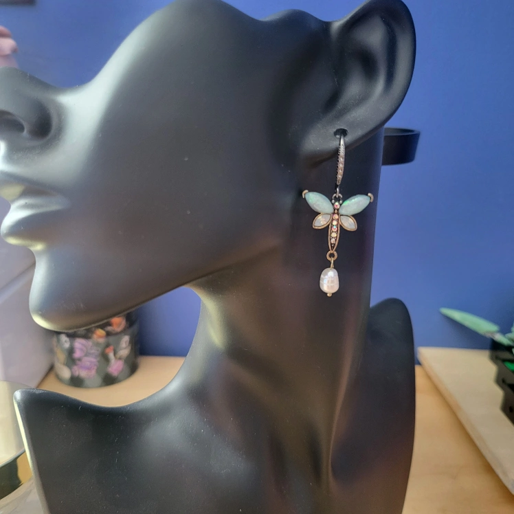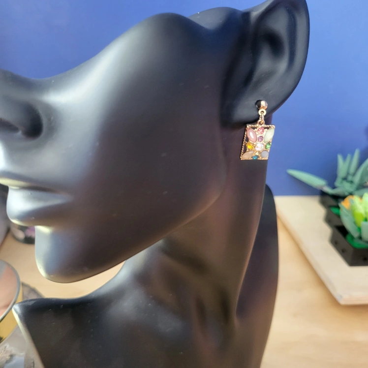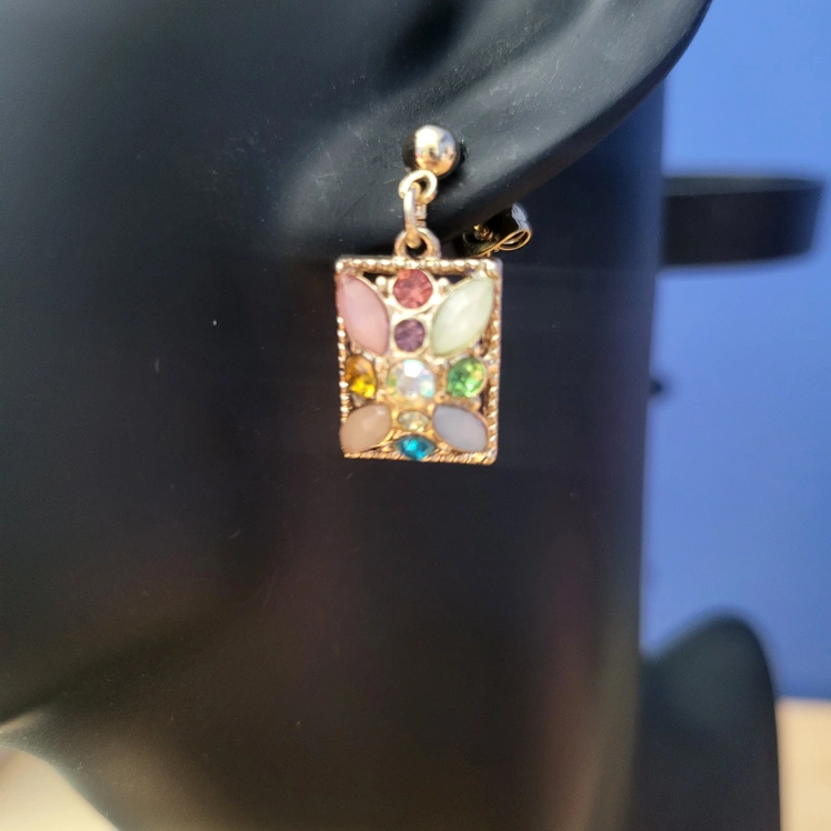 Beautiful pair of earrings. Gold-tone metal. Post closure.