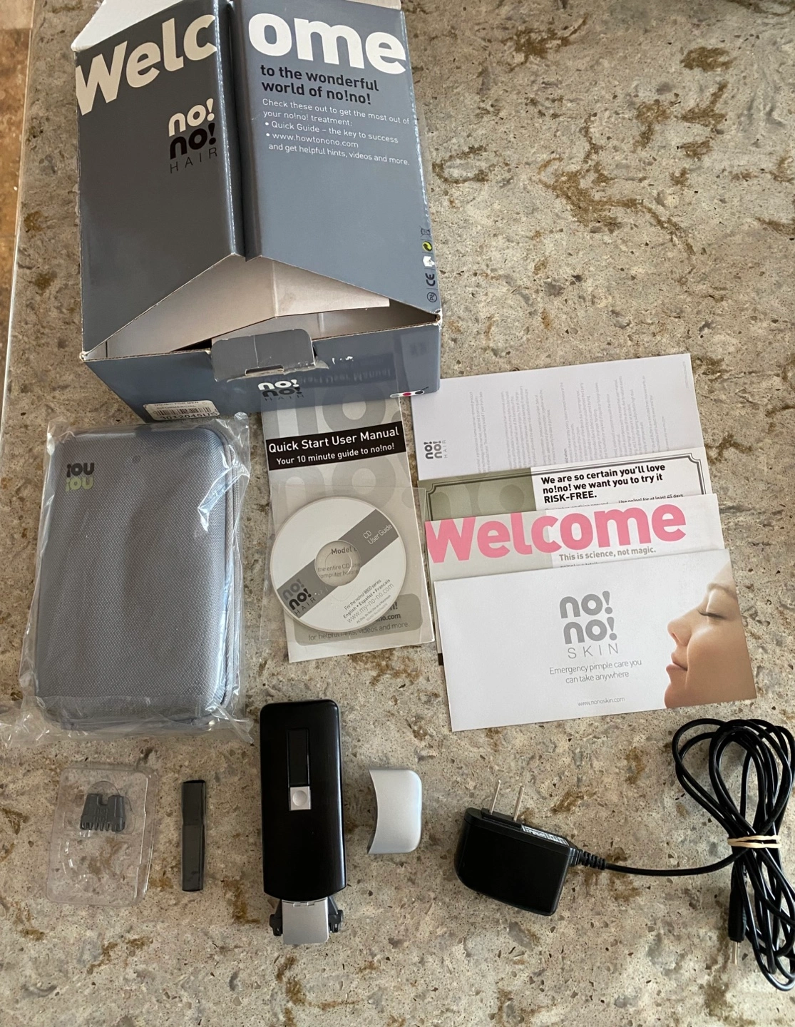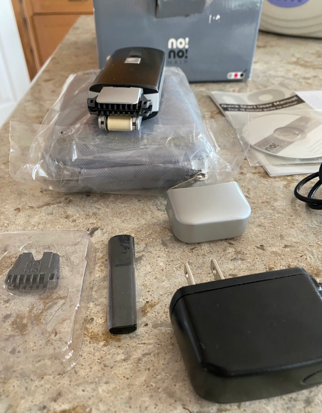Like new, No!No! Hair removal device. Includes instruction manual, cd, power adapter, carrying case, and extra attachments. No smoking or pet household. Pick up in Scenic Acres NW