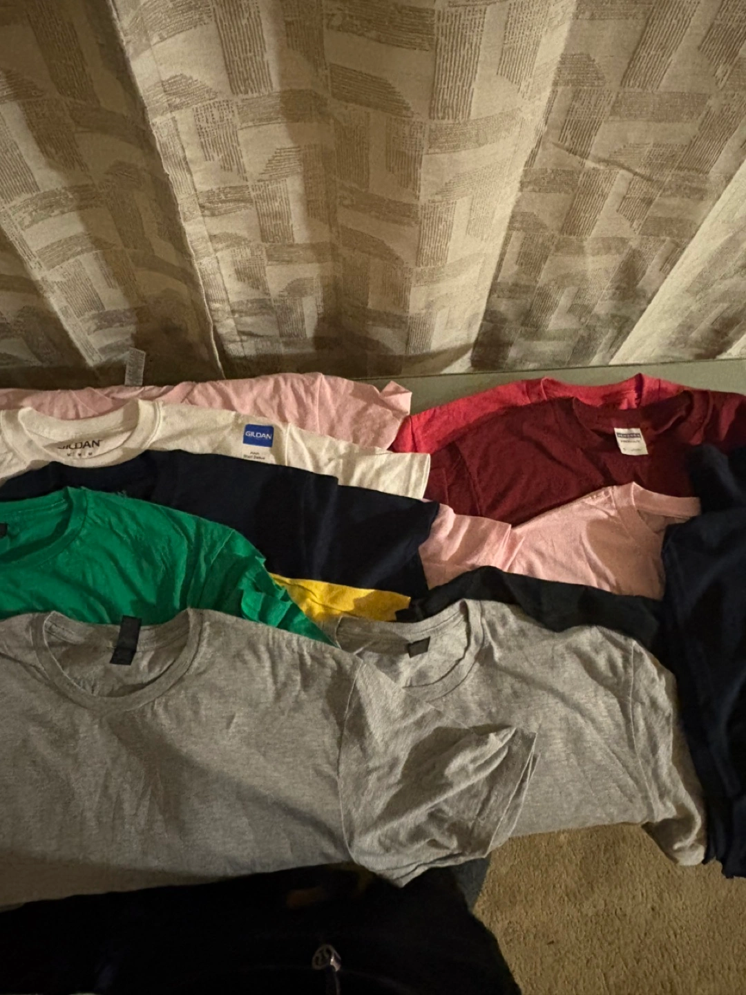 Large bundle of various coloured t-shirts. Includes different sizes and styles. Mostly Gildan and Jerzees brands. Great for crafts or resale.