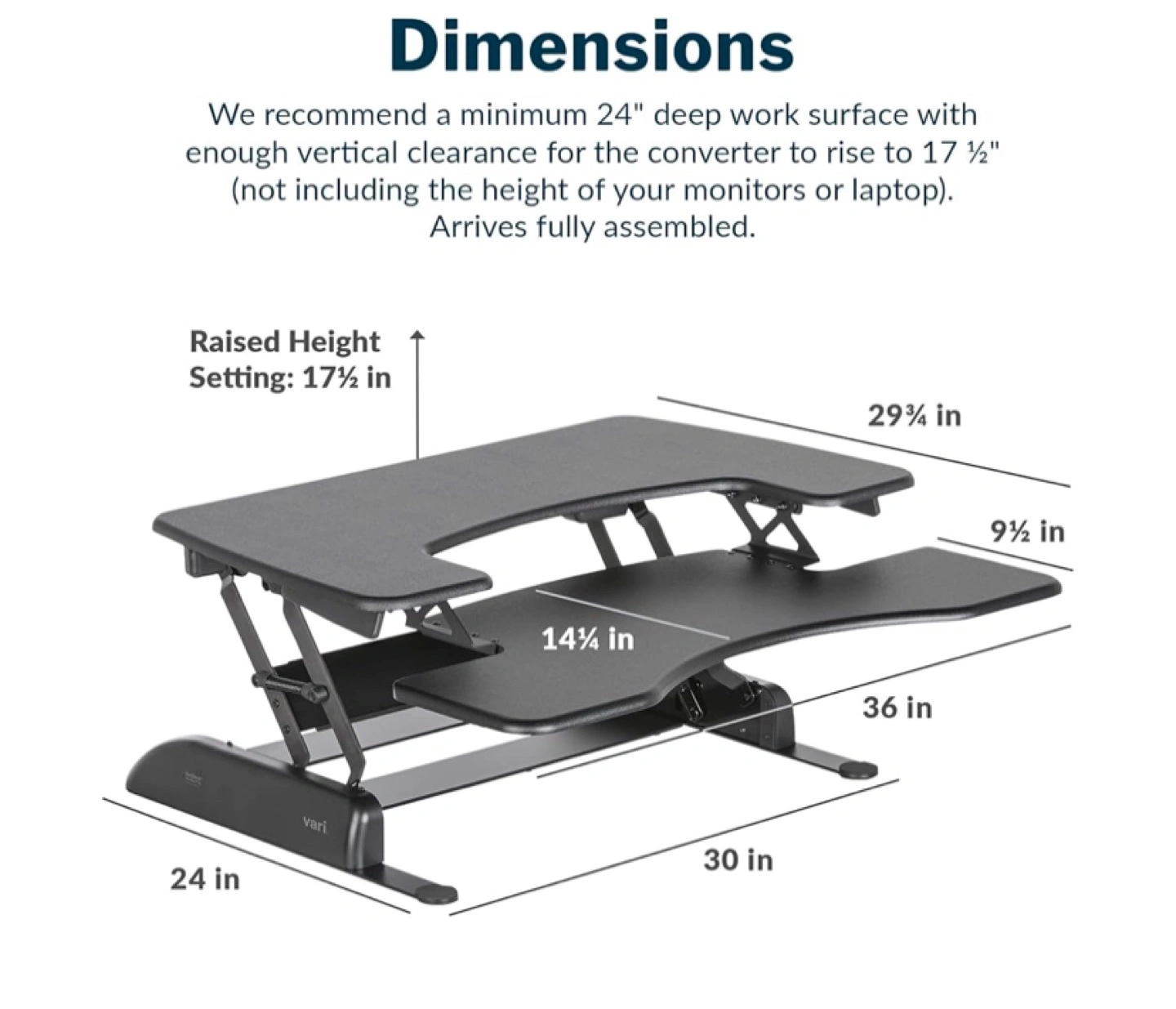 Commercial-Grade Quality - The original VariDesk® set the standard for quality. The Vari® desktop converters feature a heavy weighted base for stability, thicker gauge steel, and a durable 3D laminate finish.
