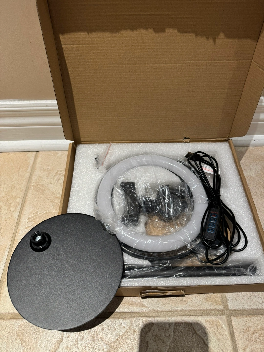 170Brand new, never used Ring Light with Phone Holder Great for meetings or for recording videos for social media! - Adjustable height - Warm, cold and natural white light - Adjustable brightness - Pickup near Creditview & Britannia in Mississauga - Check out my other listings… something may catch your eye! 👀 😁