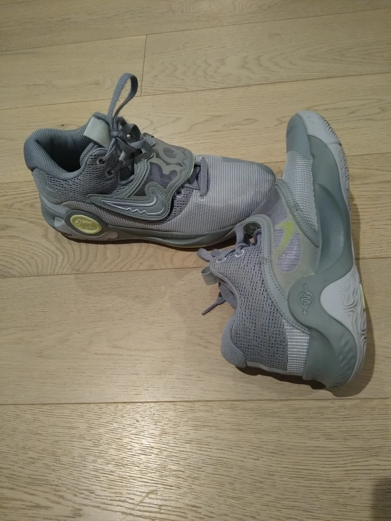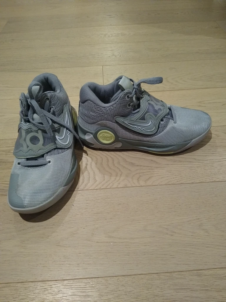 Like New - very Lightly used Nike KD Trey 5 X basketball shoes in size 8.5. Grey with light purple accents. Never worn outdoors.